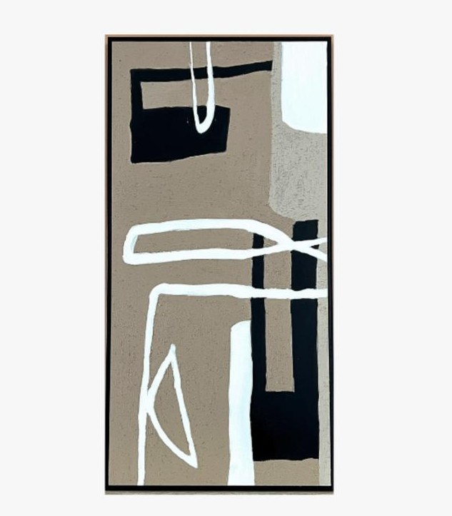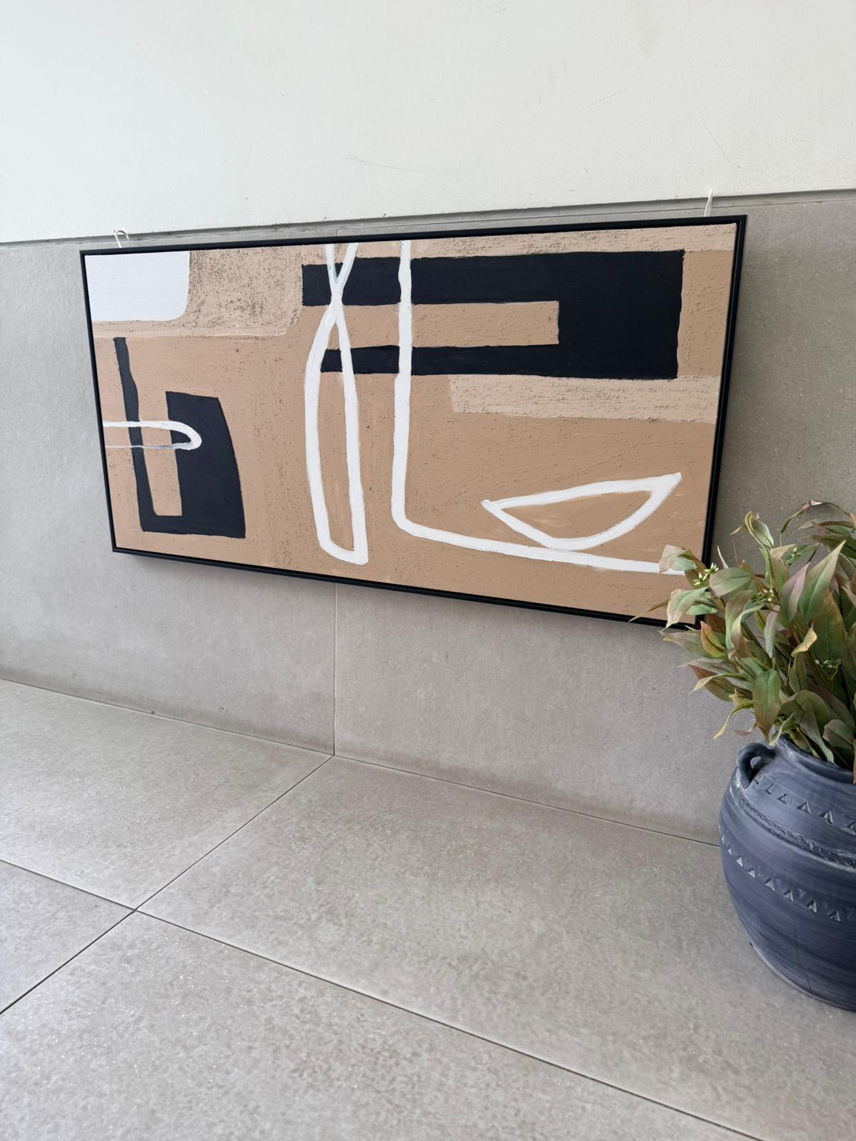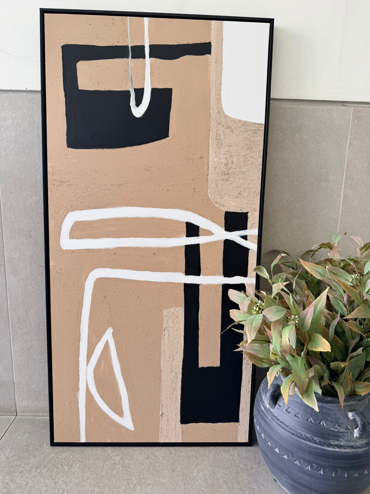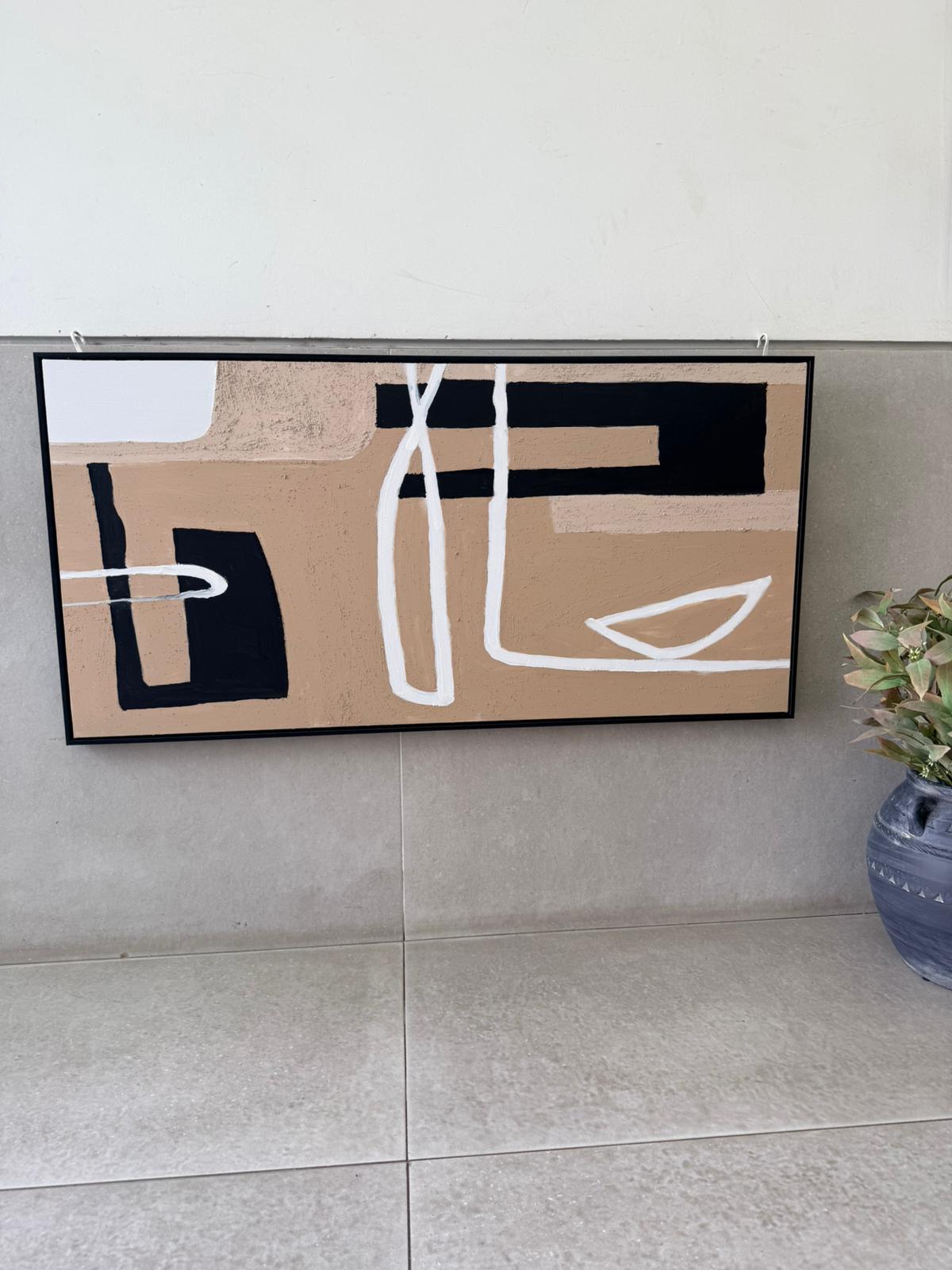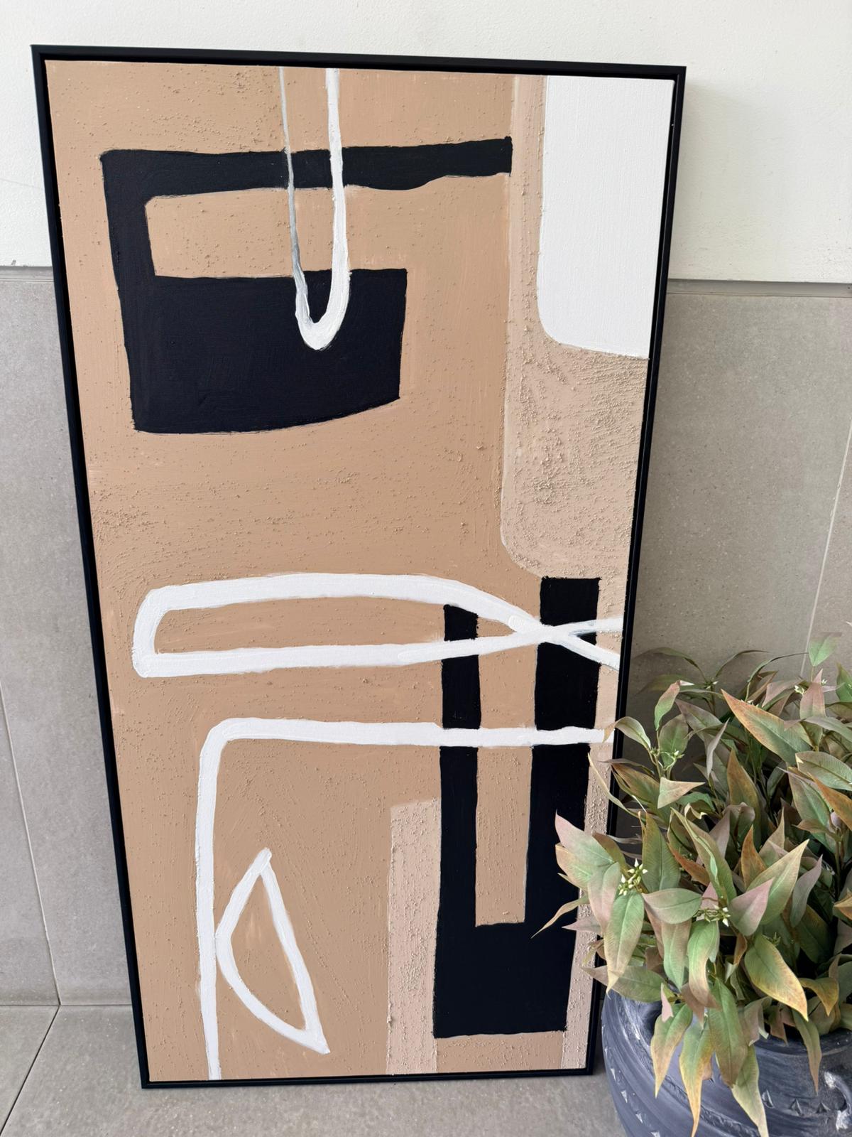 תמונת קיר מופשטת ציור בעבודת יד בגוונים טבעיים – שחור בז' חום לבן