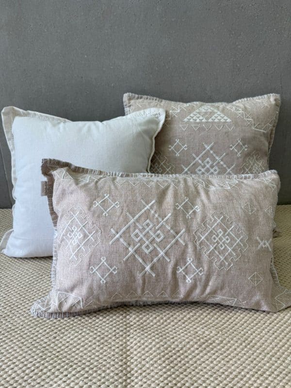 כרית מלבנית 30X50 בגוון בז'- טבעי עם רקמה לבנה