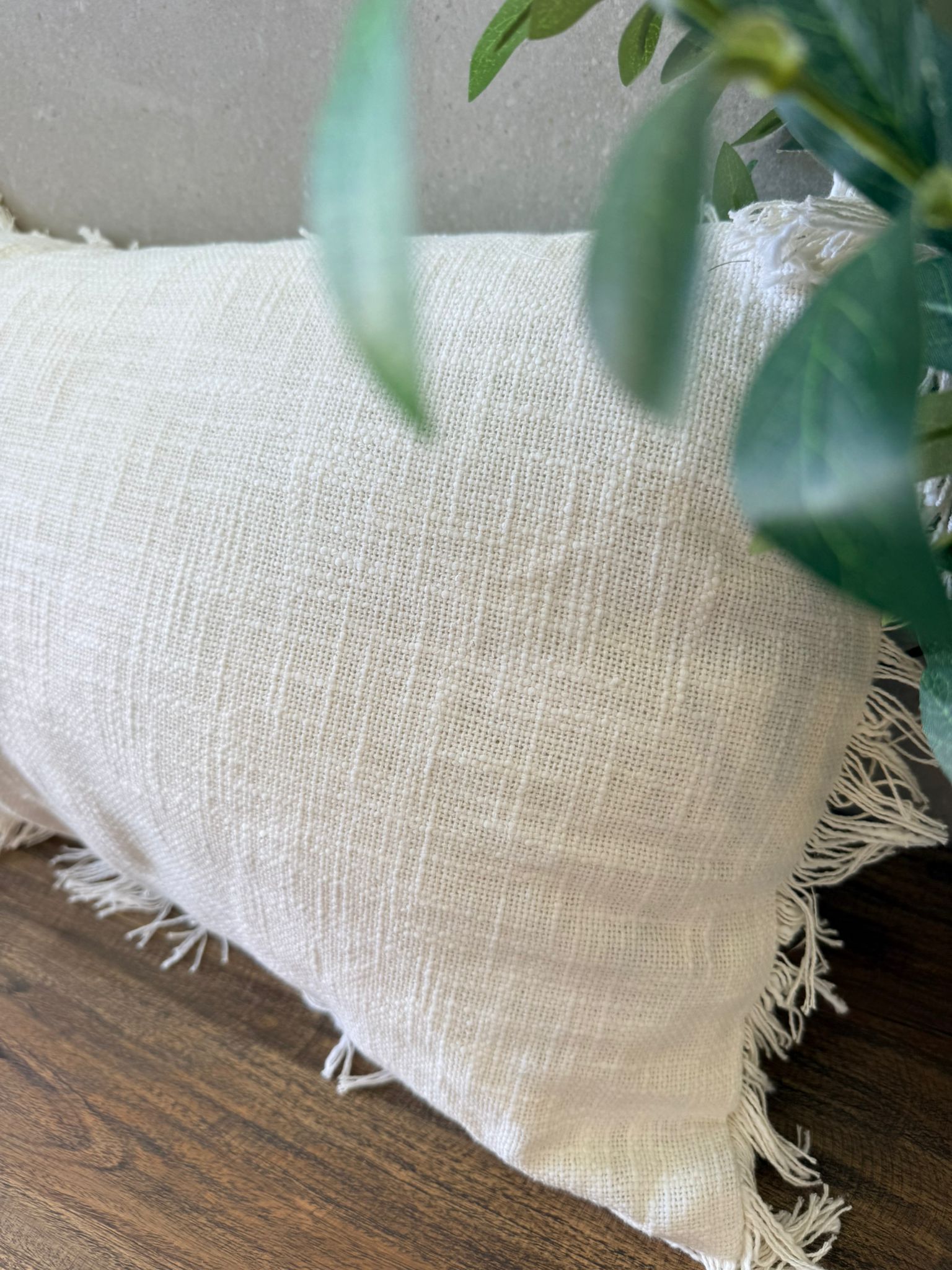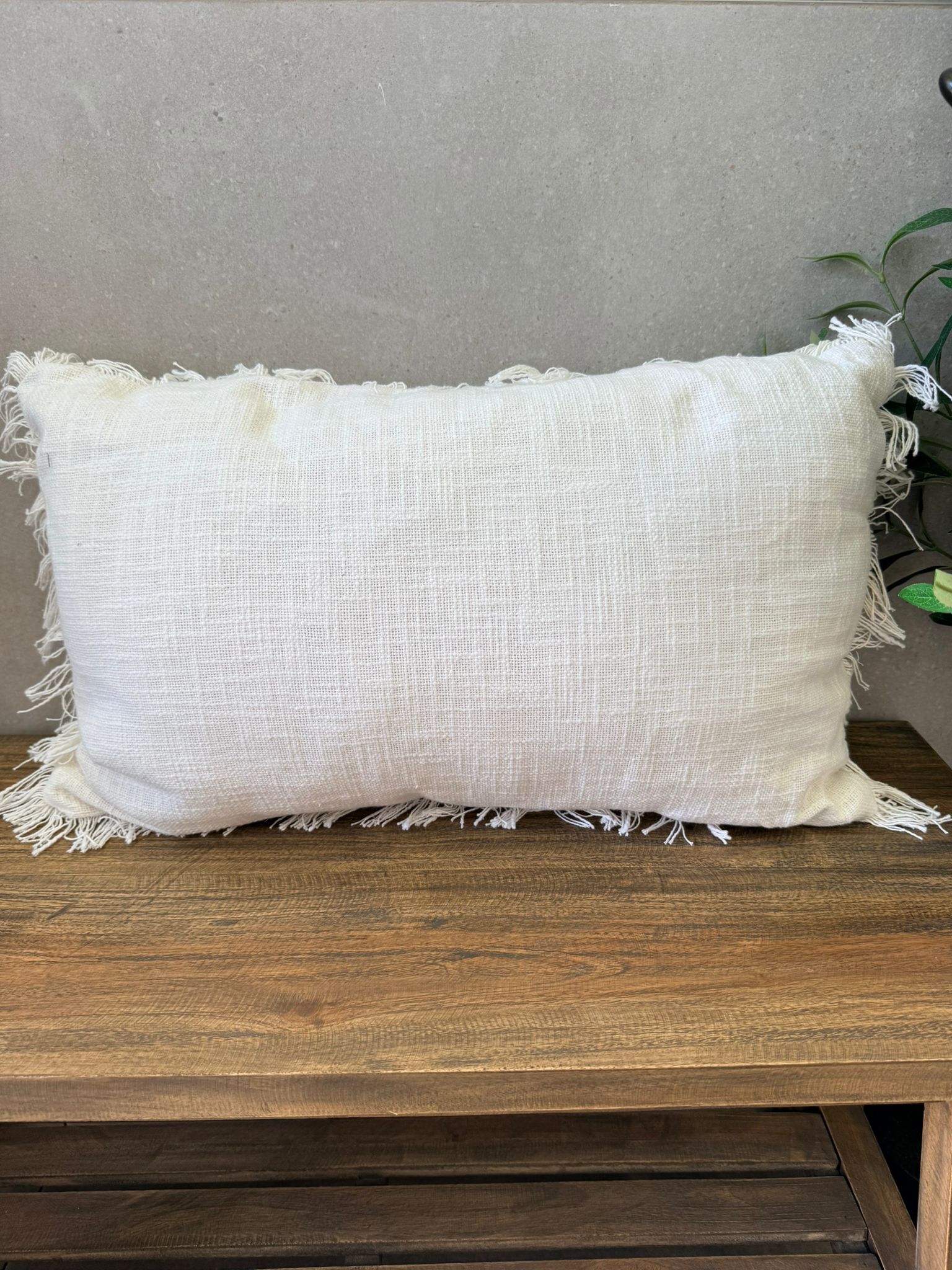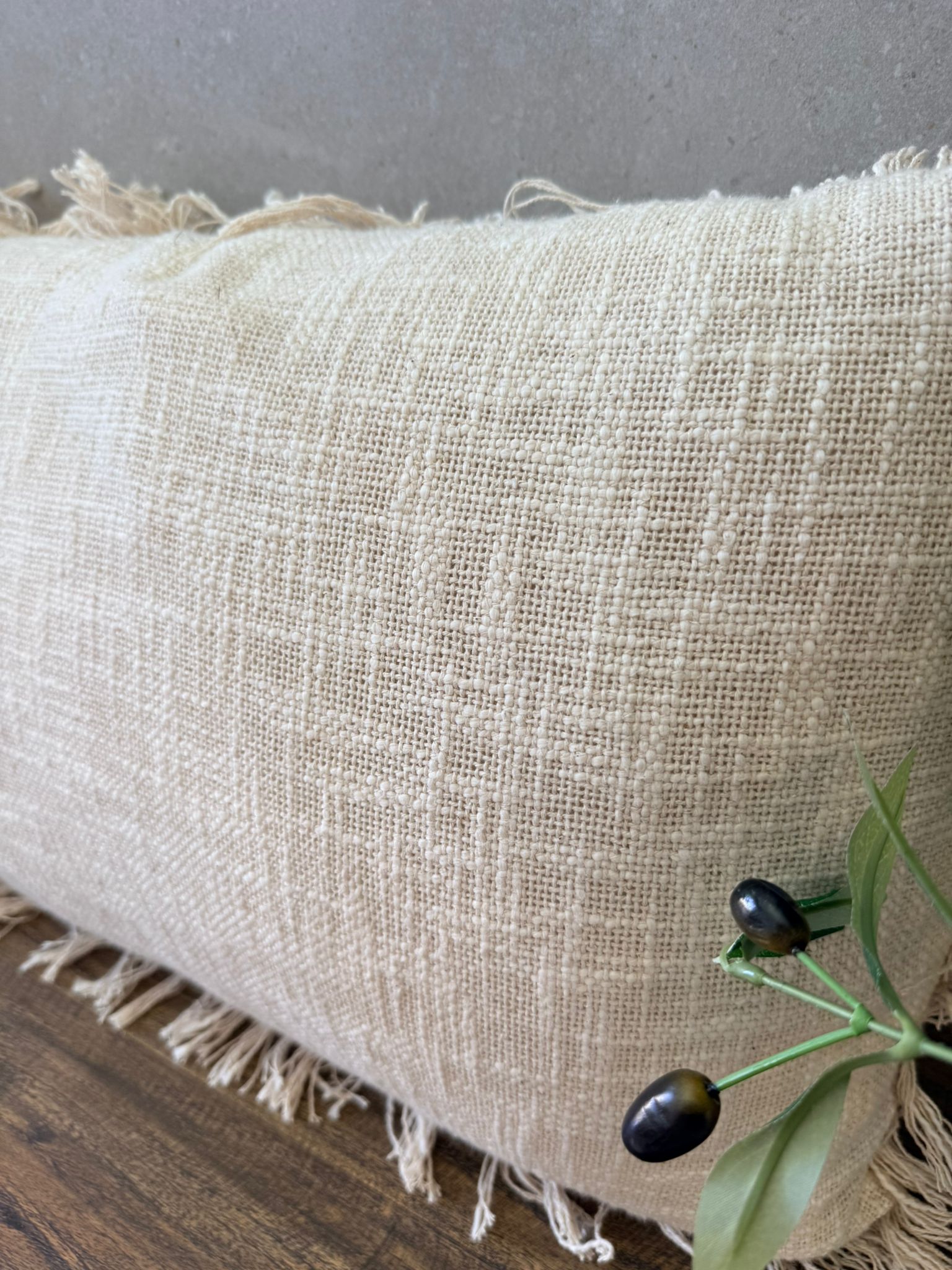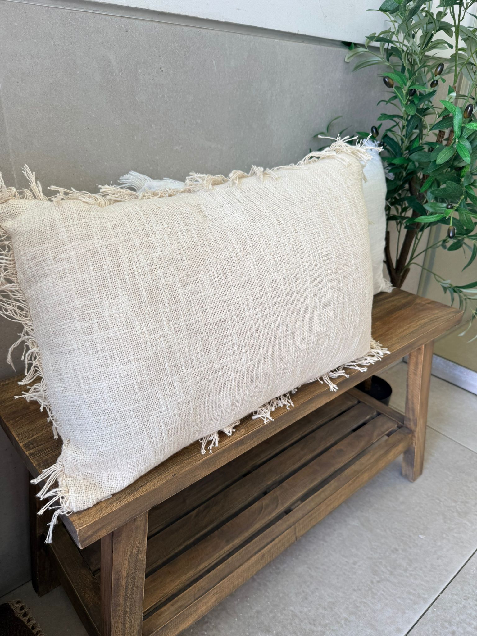 כרית נוי בשילוב פרנזים בצבע שמנת או שמנת