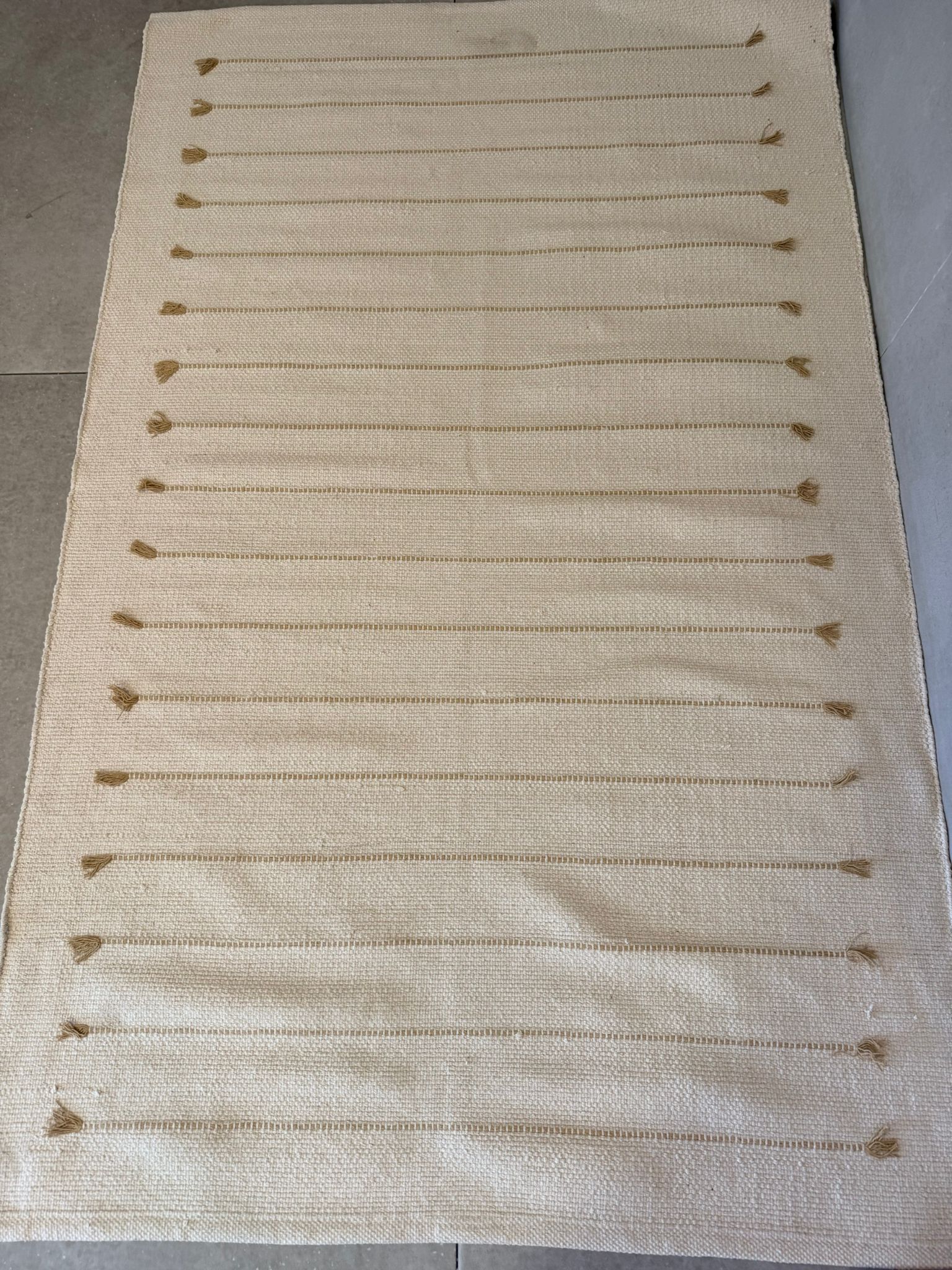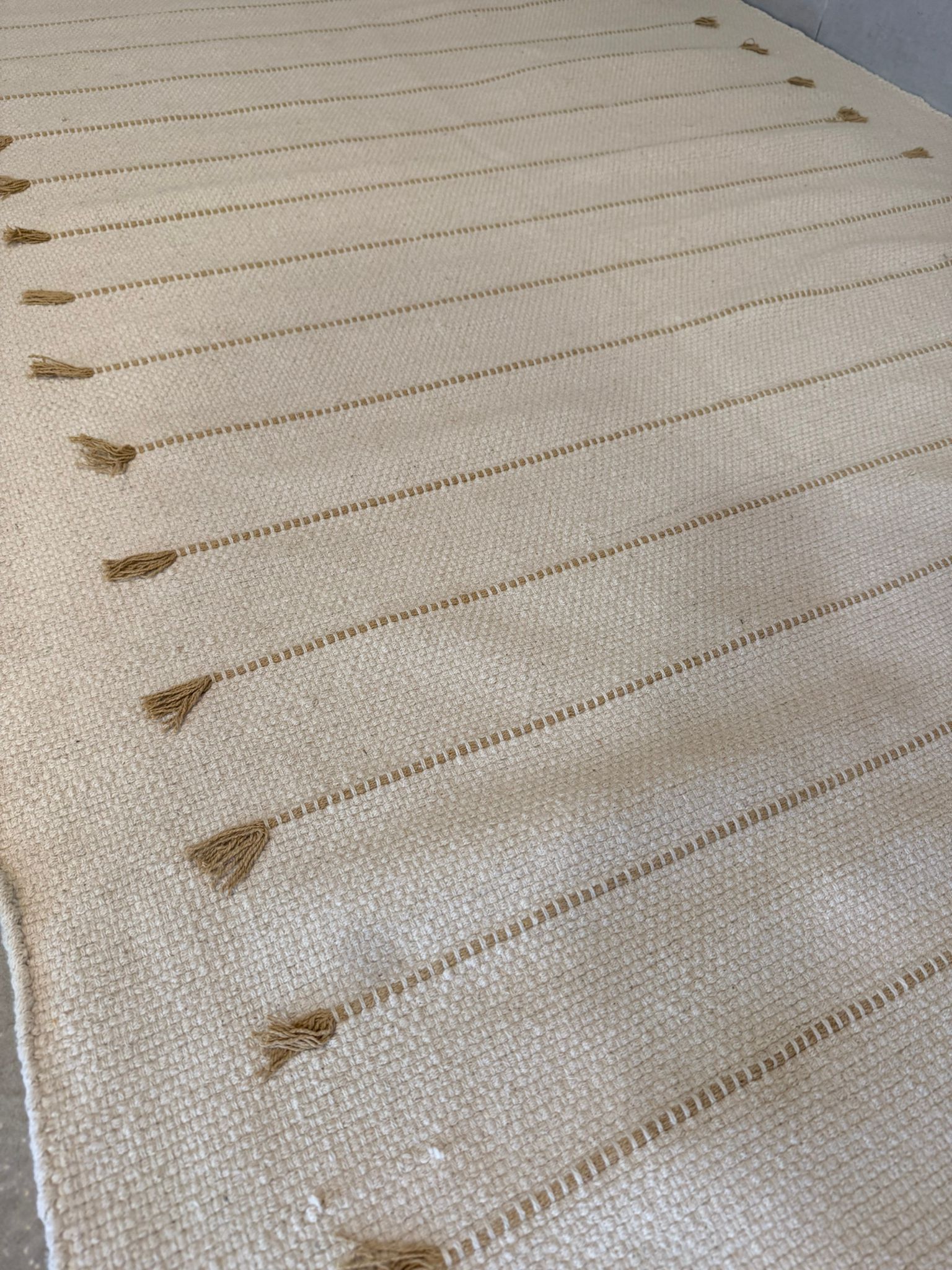 שטיח כותנה מהמם בגוון טבעי שמנת עם אריגת פסים