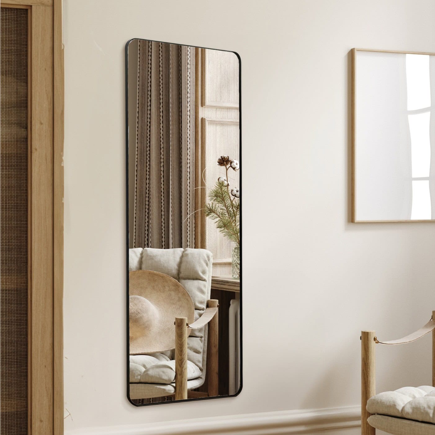 מראה מלבנית עם פינות מעוגלות ומסגרת דקה שחורה