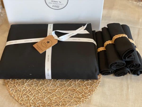 סט סידור שולחן שחור – מפה, מפיות, חבקים