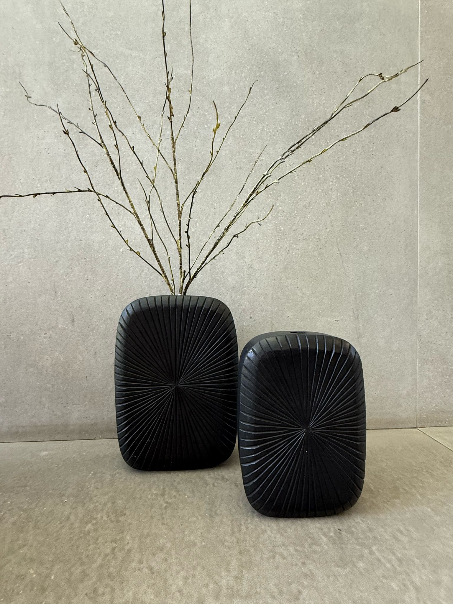 אגרטל עץ מחורץ שחור – 2 גדלים