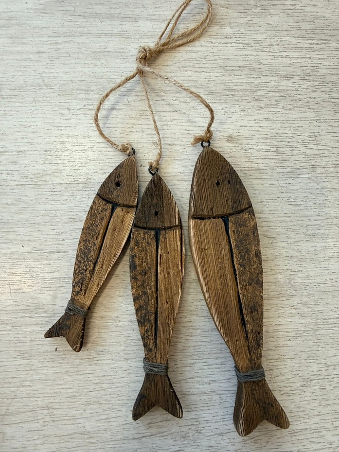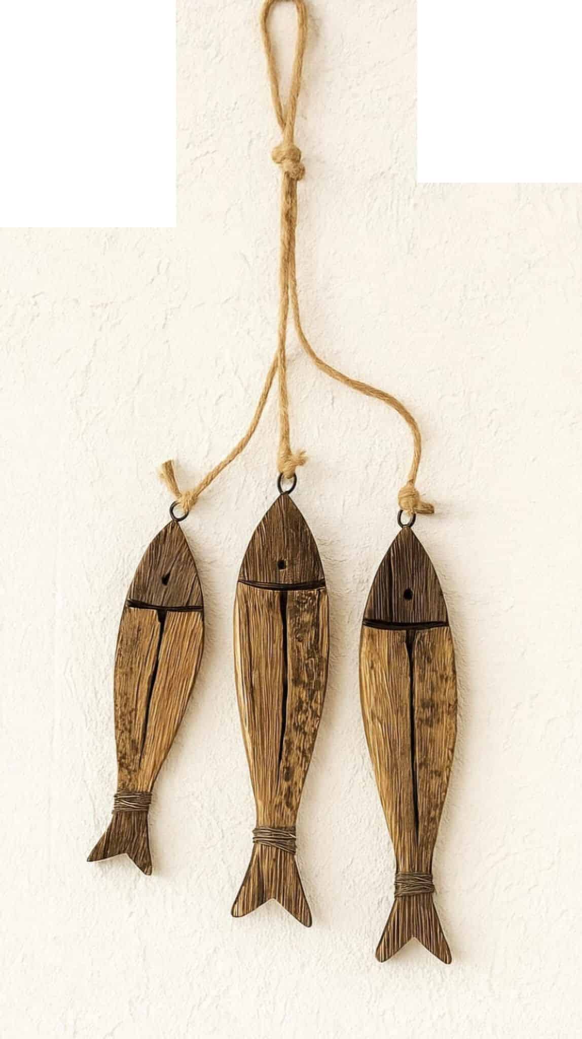 מתלה שלישיית דגים עץ בצבע טבעי מושחר