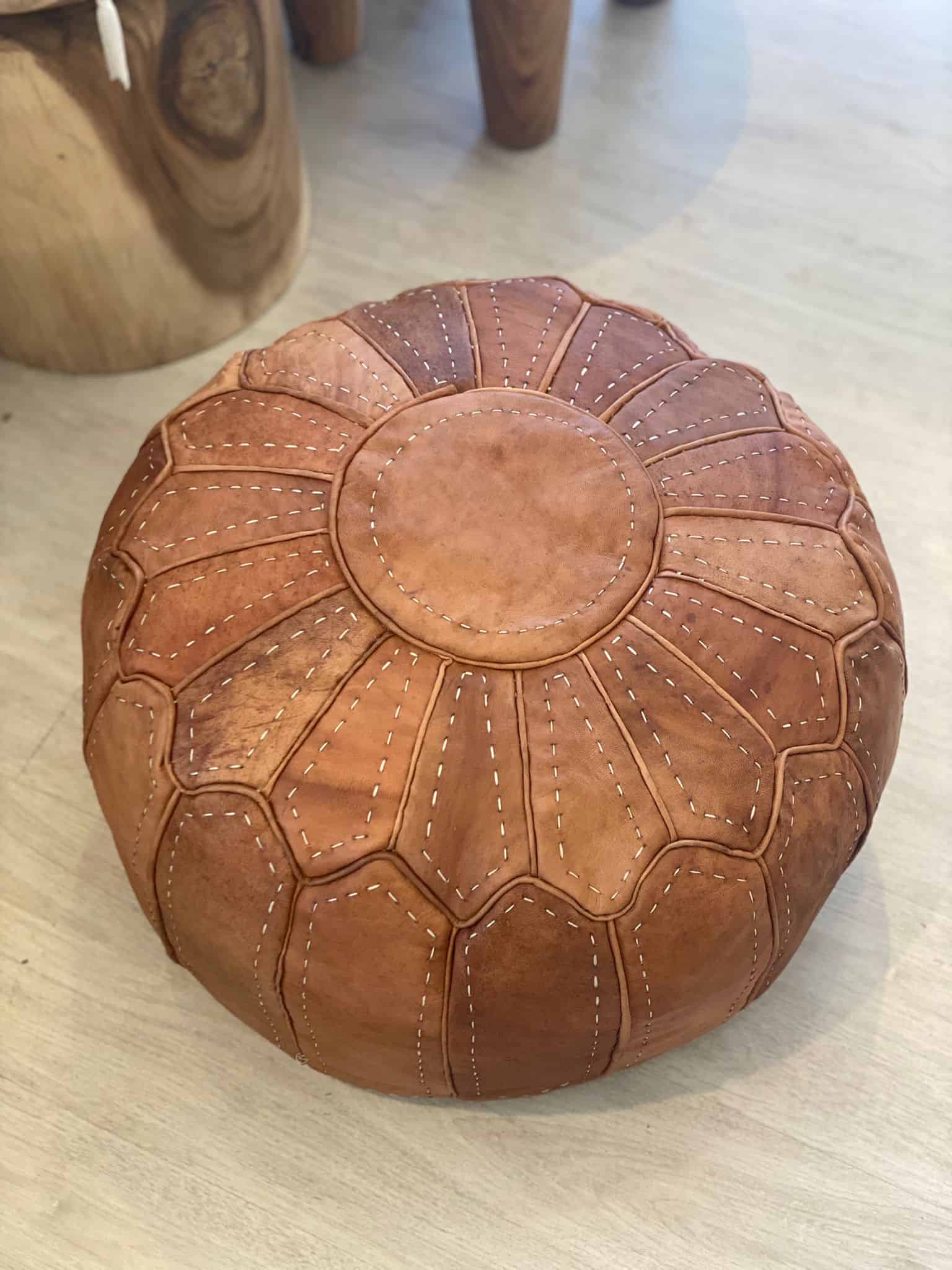 פוף עור מרוקאי בצבע חום עשוי בעבודת יד, אין מושלם כזה