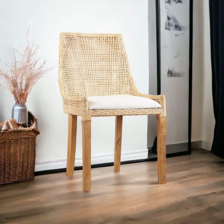 מושב מעוצב מראטן טבעי, כיסא שיקי מושלם לפינת אוכל.