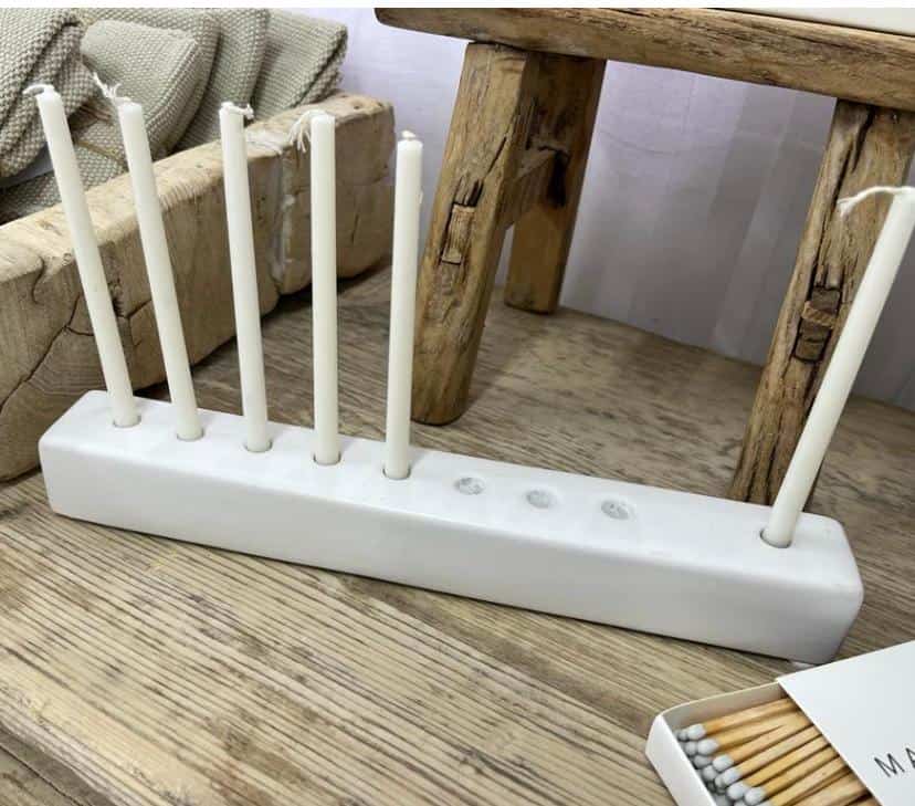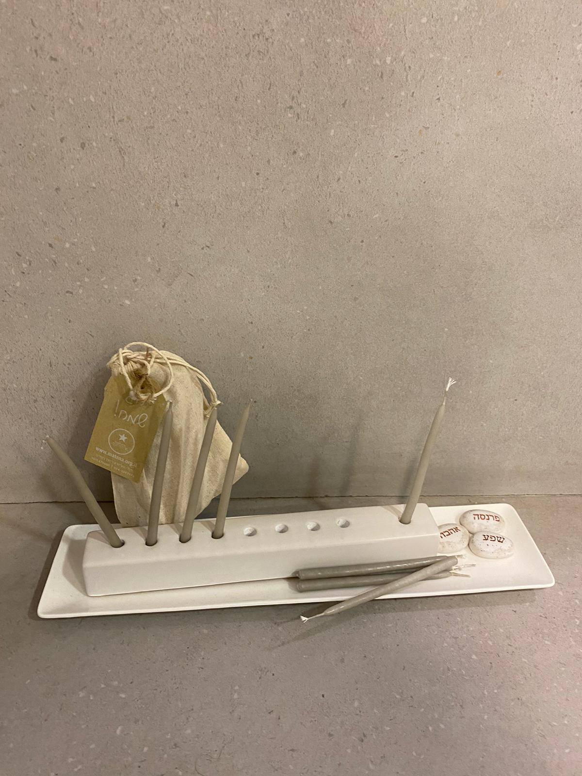 חנוכיה מקרמיקה בצבע לבן בסגנון נקי ומינימליסטי, חנוכיה אלגנטית ומרשימה