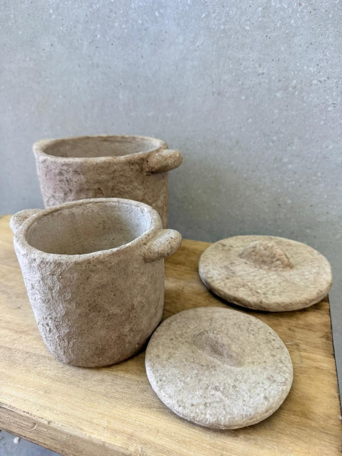 כלי חרס מהממים עם מכסה במראה עתיק ומיוחד, כלים לעיצוב ולאחסון