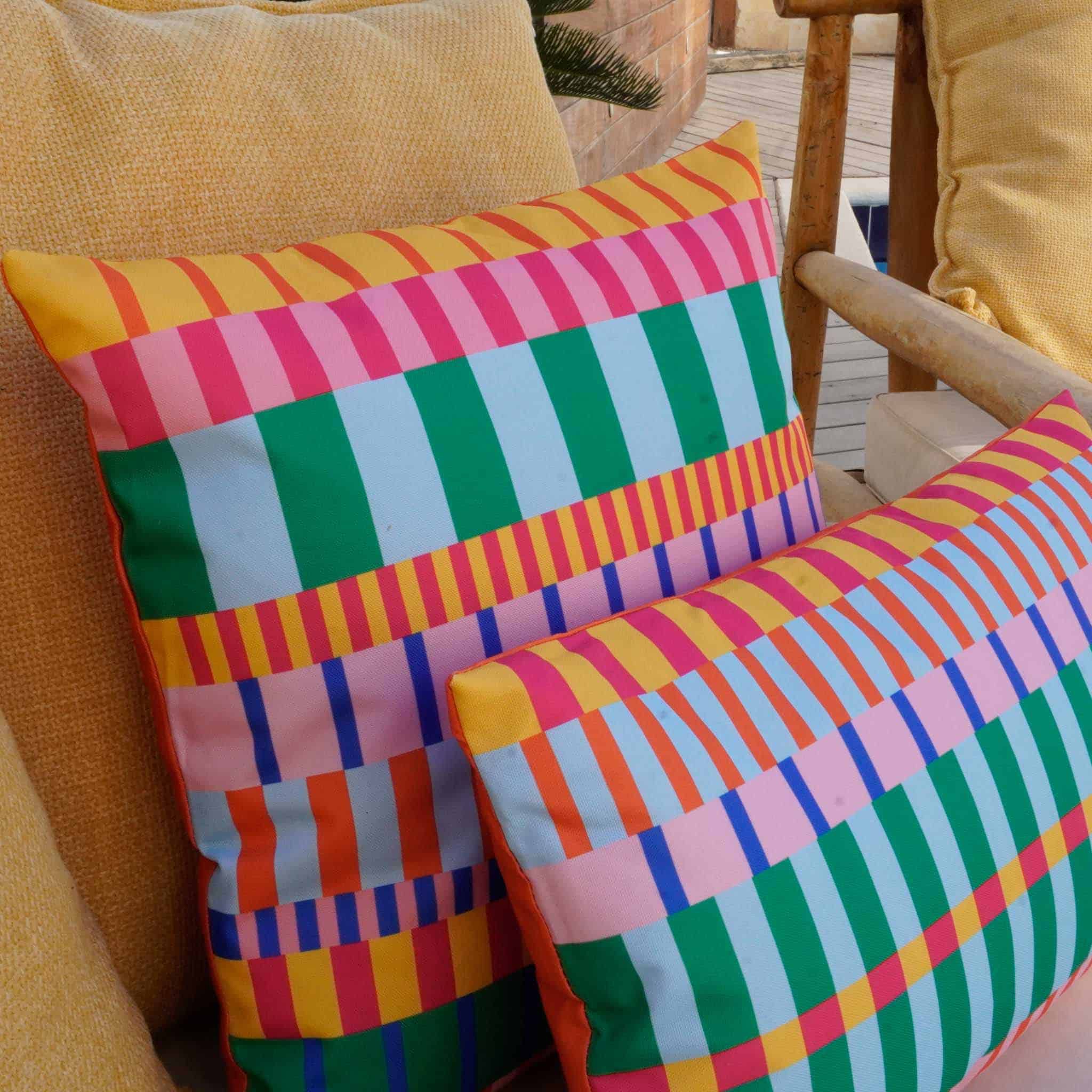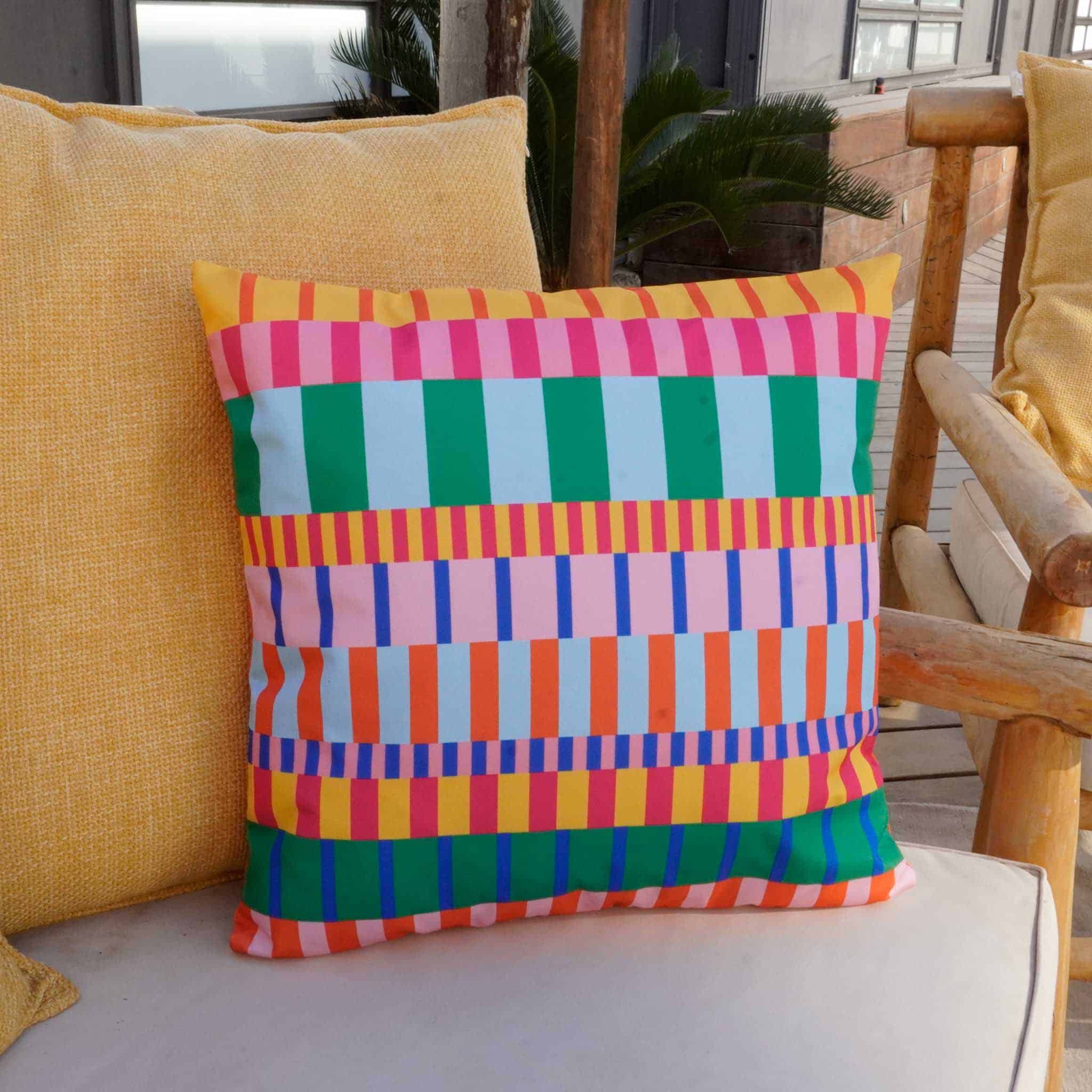כרית צבעונית ומהממת לעיצוב, כריות עם עמידות גבוהה לתנאי חוץ, מושלמות לעיצוב פינות ישיבה בחוץ במרפסת בגינה, מתאימות גם לשימוש פנים בעיצוב הסלון.