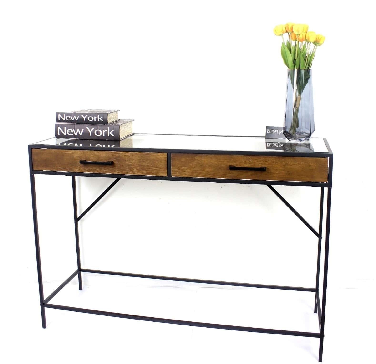 קונסולה עץ מתכת וזכוכית – 2 מגירות