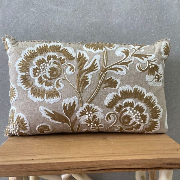 כרית עם עיטורי פרחים בגוון חום- בז'