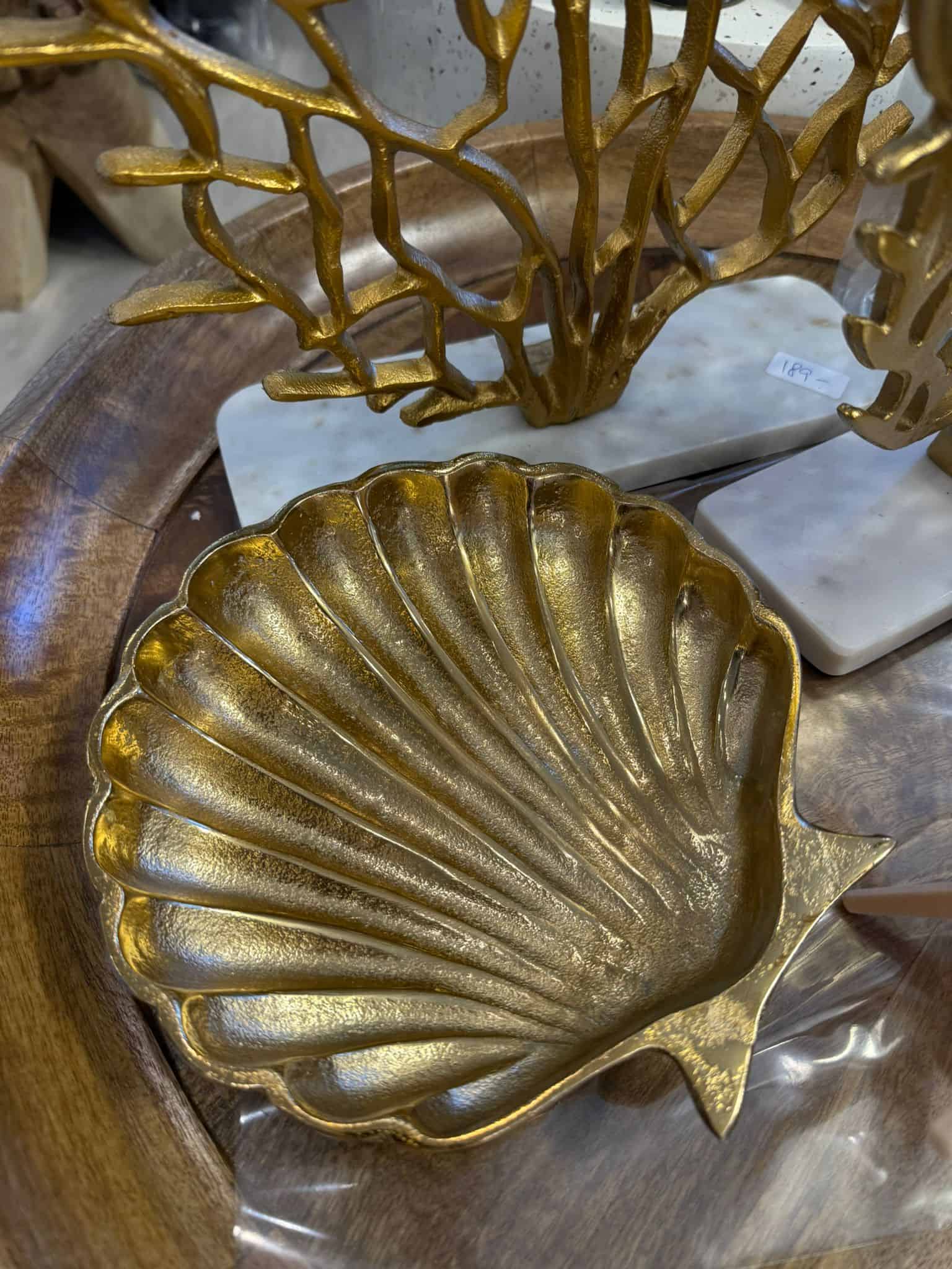 צלוחית מהממת בצורת צדף בצבע זהב עשויה מיציקת מתכת