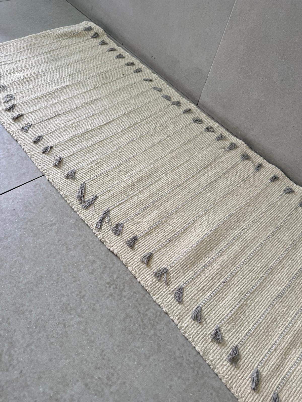 שטיח כותנה מהמם בגוון טבעי שמנת עם אריגת פסים אפור