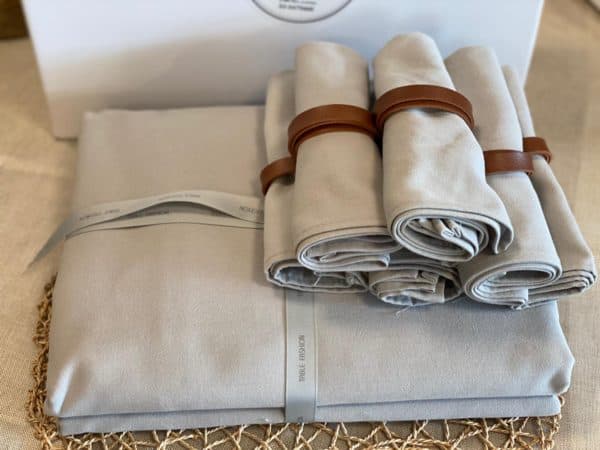+ מפה אפורה דמוי פשתן + 8 מפיות בד אפורות