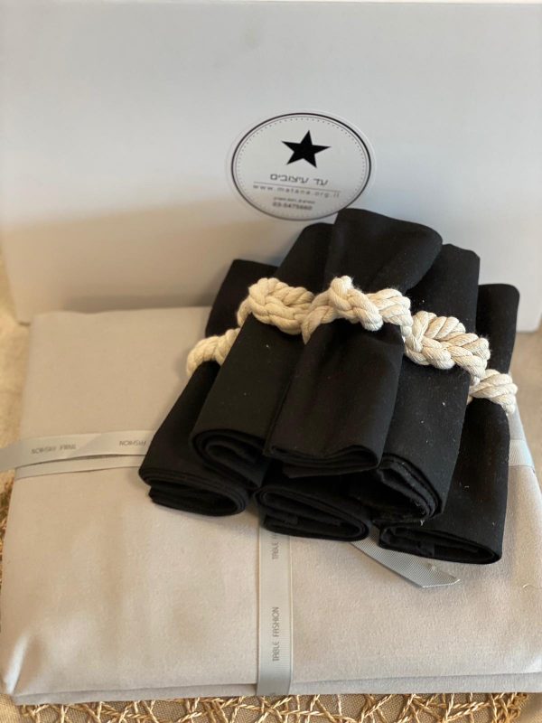 + מפה אפורה דמוי פשתן + 8 מפיות בד שחורות
