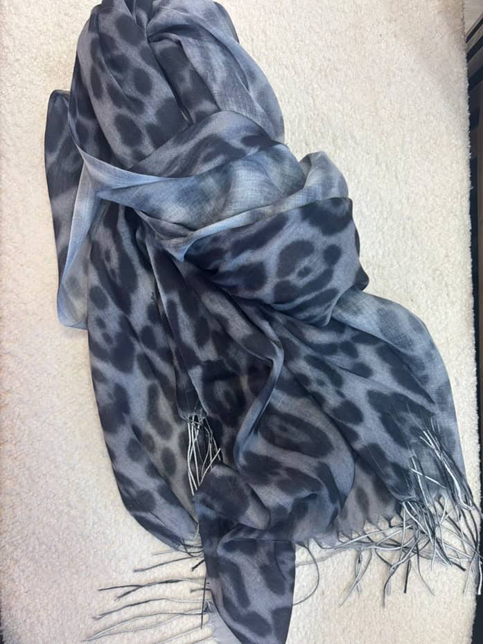 צעיף אופנתי בגוונים עם חברבורות נמר וסיומת בצבעים חום או אפור