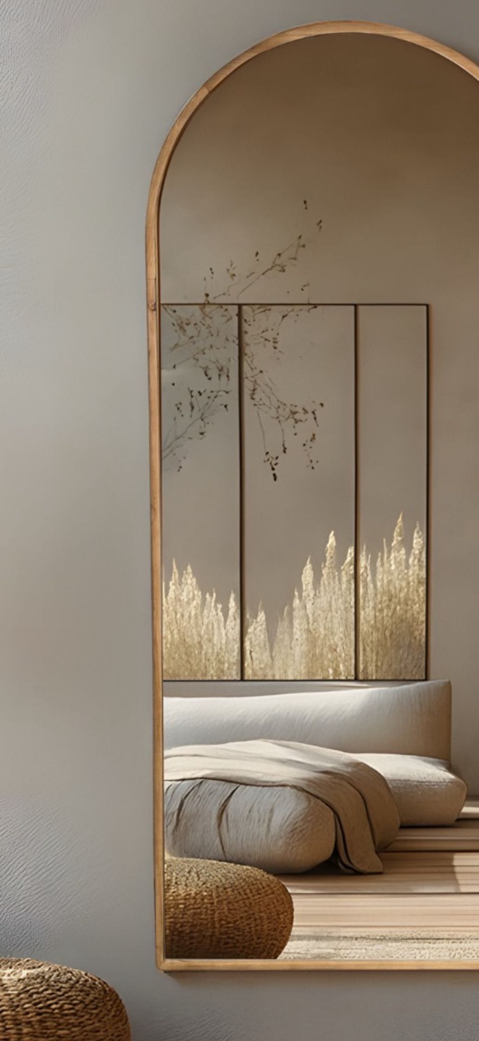 מראת גוף בסגנון חצי עיגול בסיס ישר עם מסגרת עץ עדינה ומהממת המשתלבת בכל חלל.