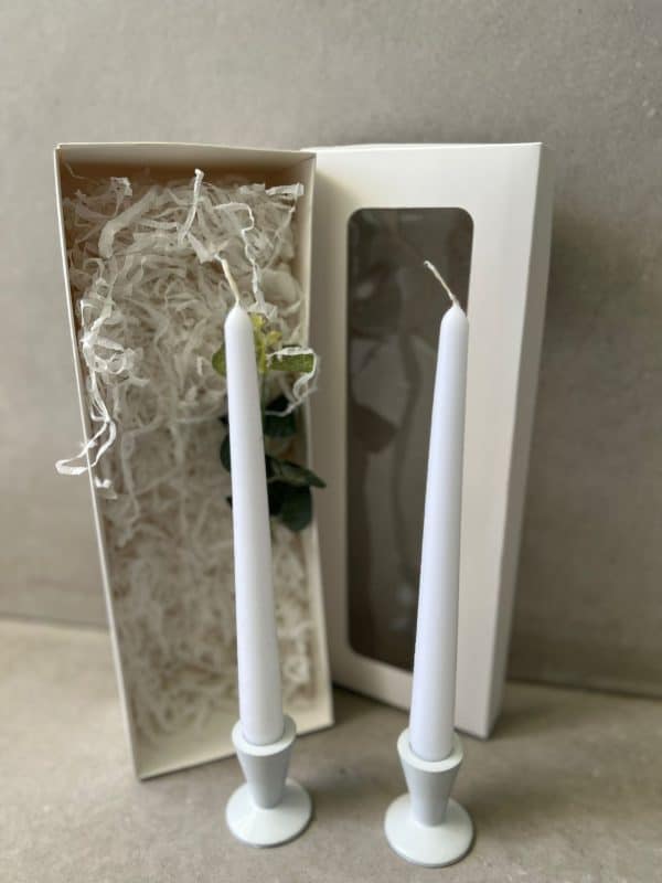 - זוג נרות שולחן ארוכים וקופסת גפרורים