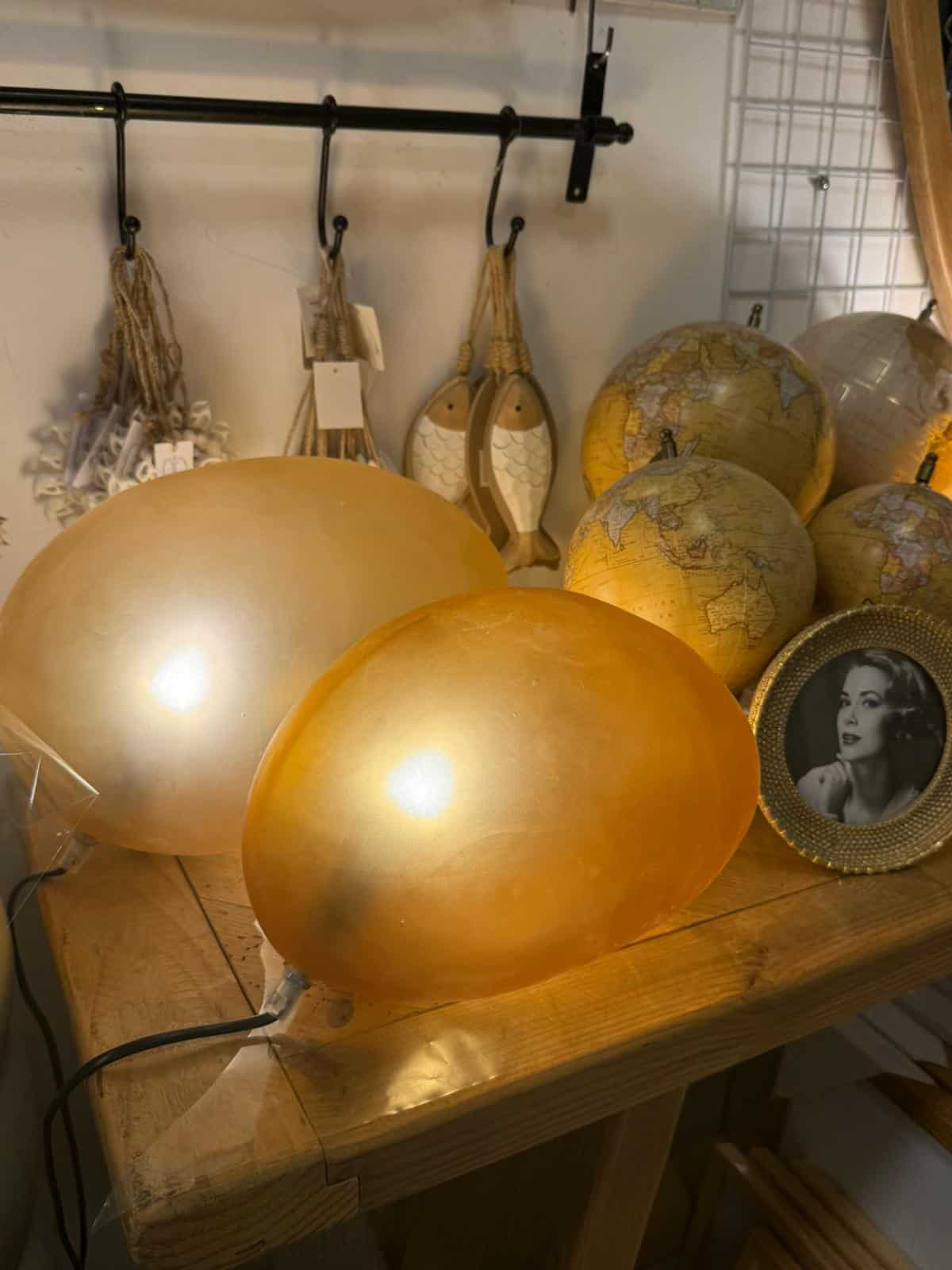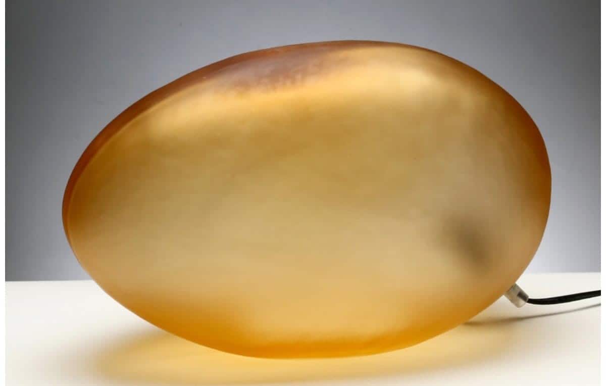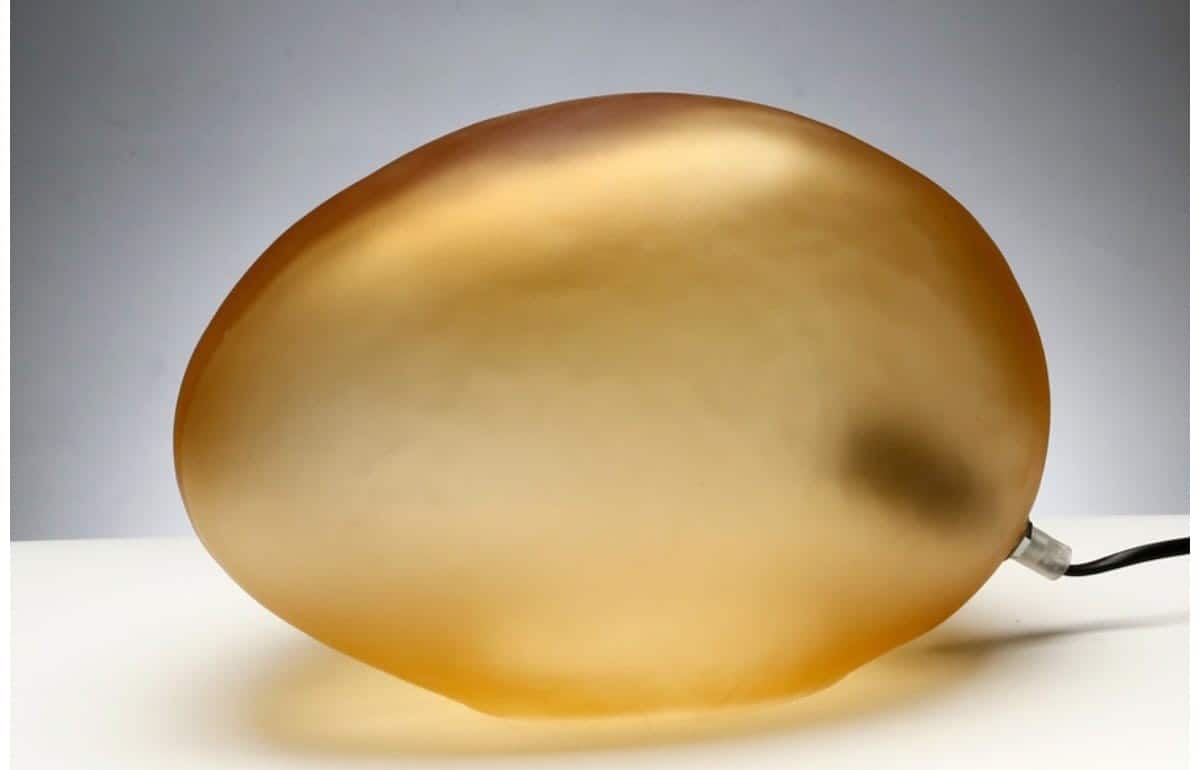 מנורת שולחן מעוצבת מזכוכית בגוון כתום דבש, מנורה מעוצבת צורת בלון