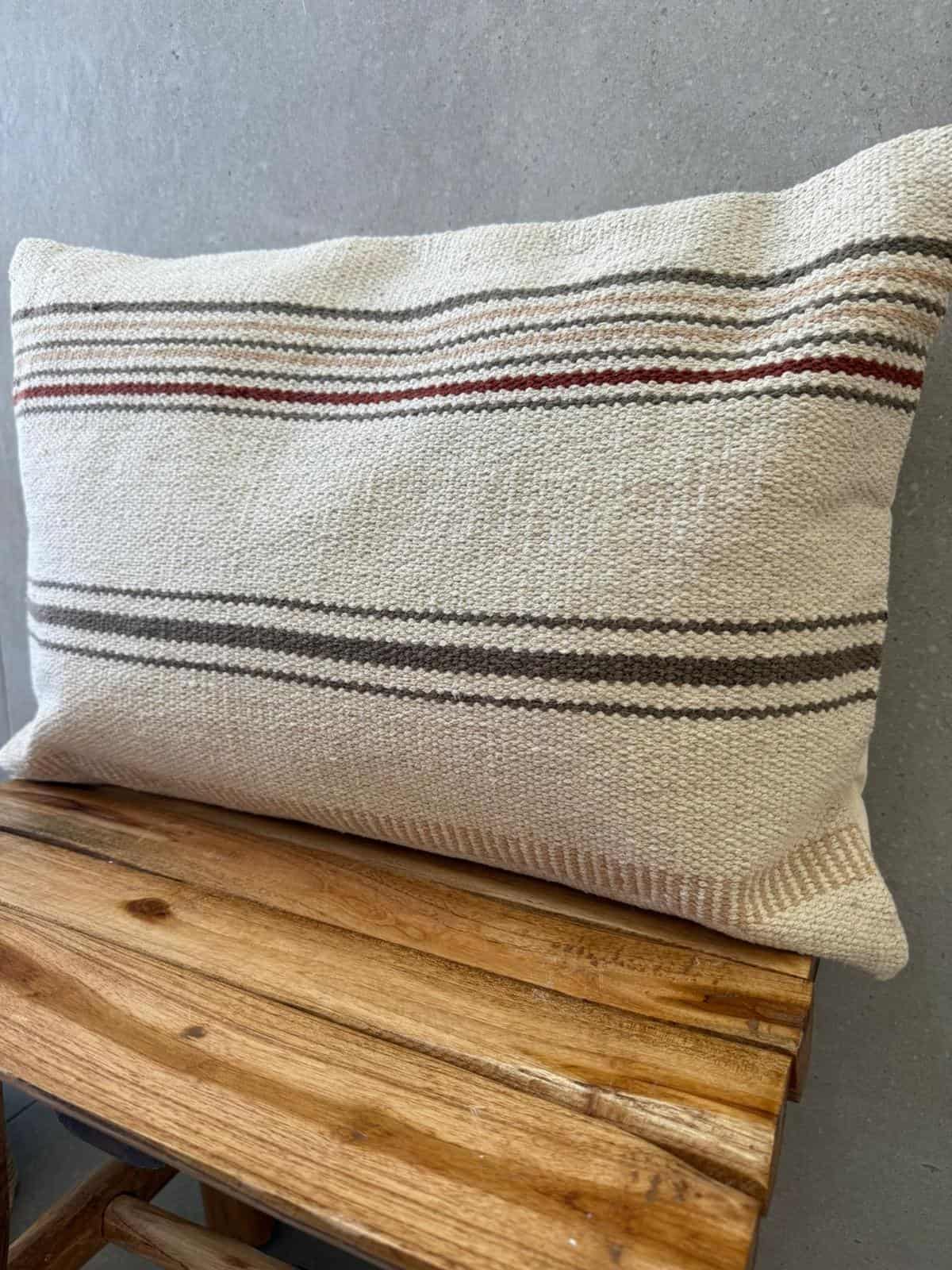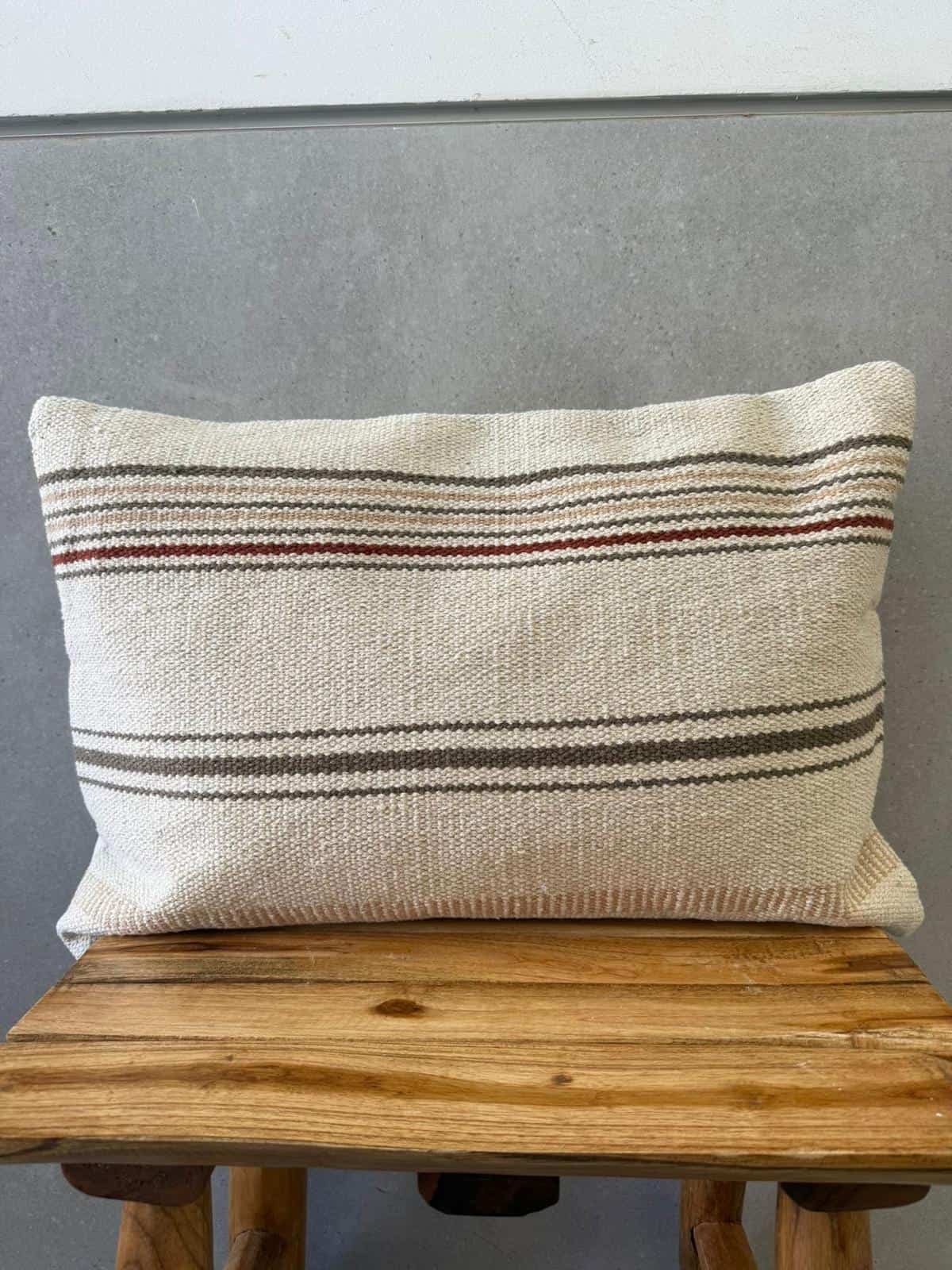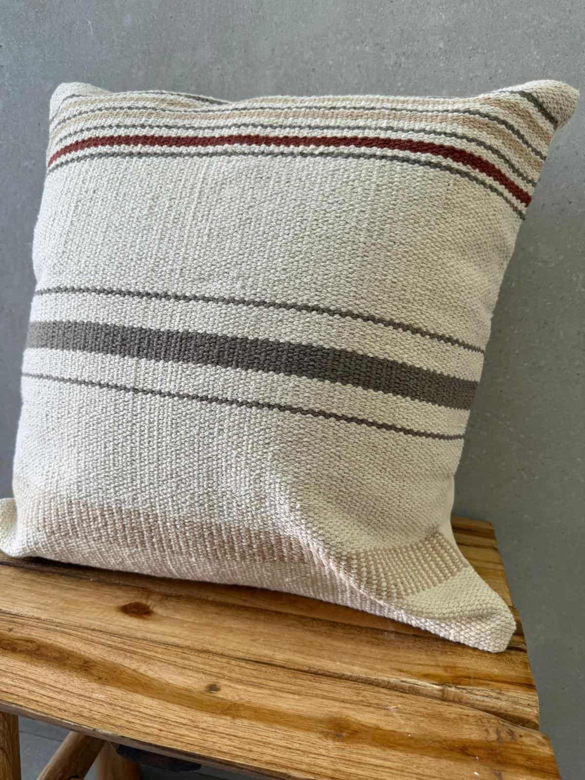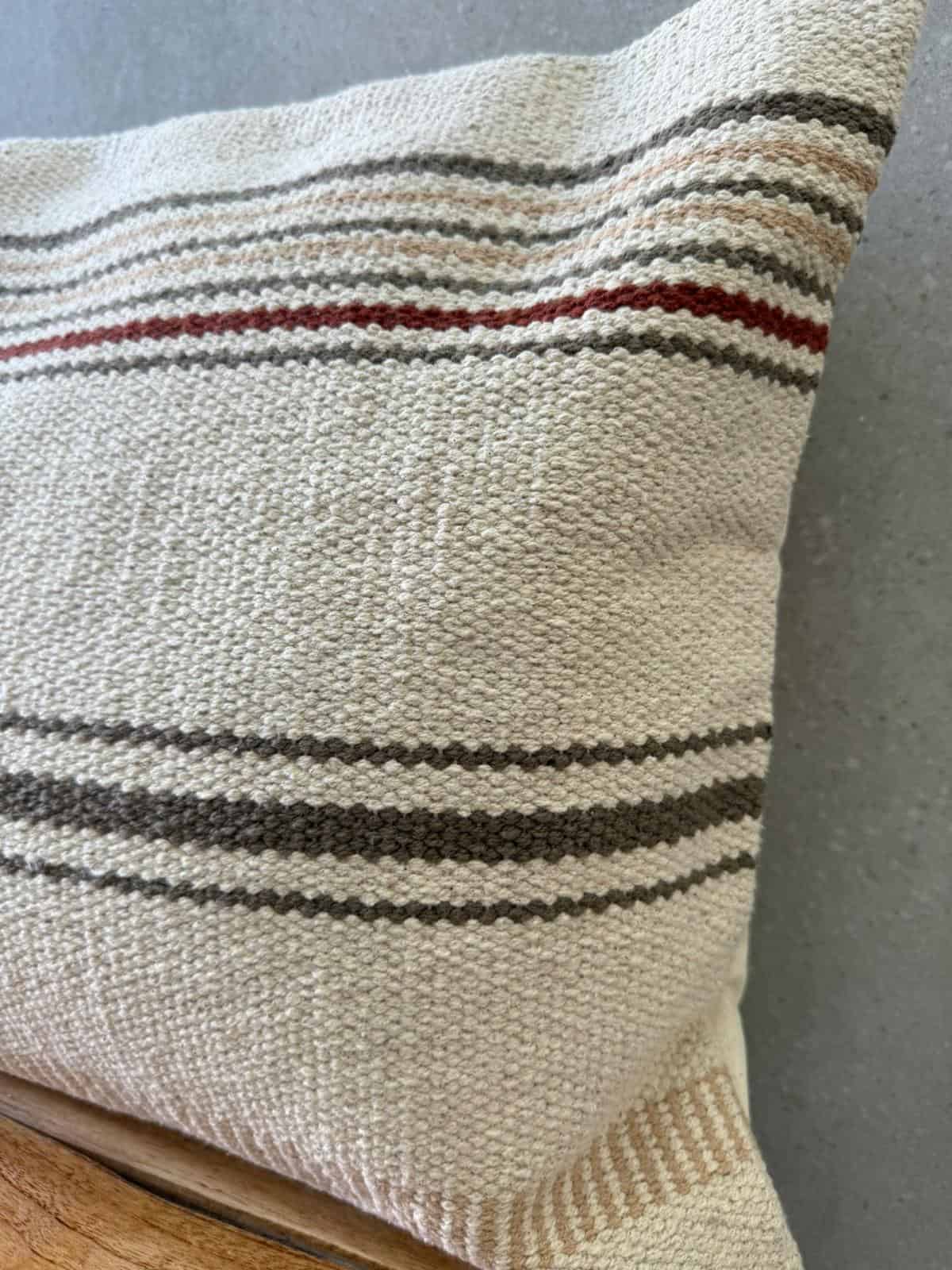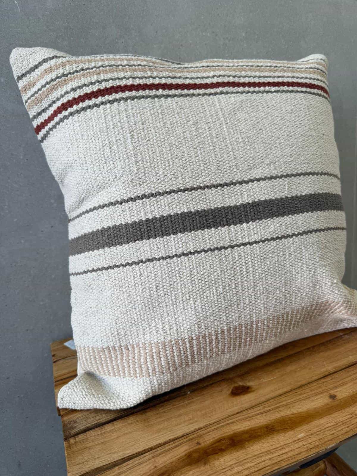 כרית נוי מהממת בגוון טבעים עם פסים בגווני אפור בז' ובורדו