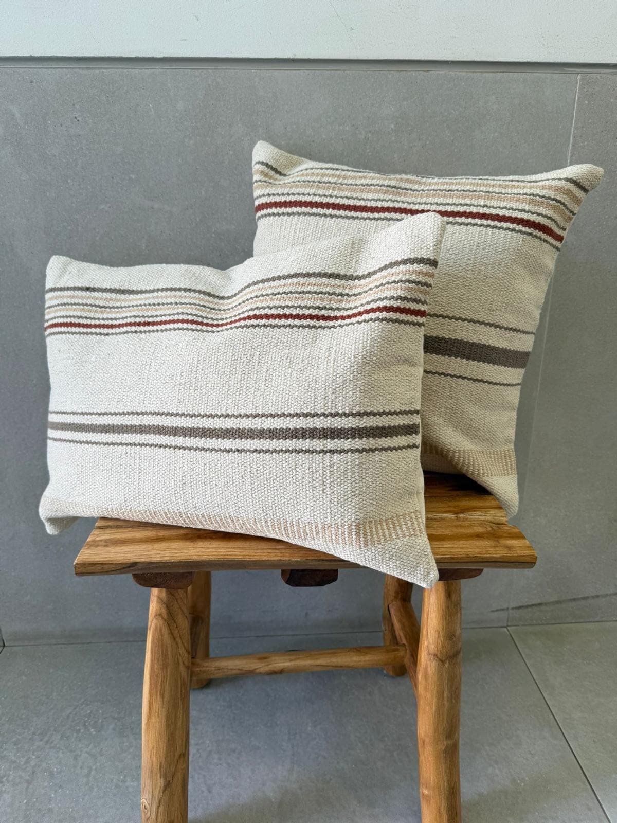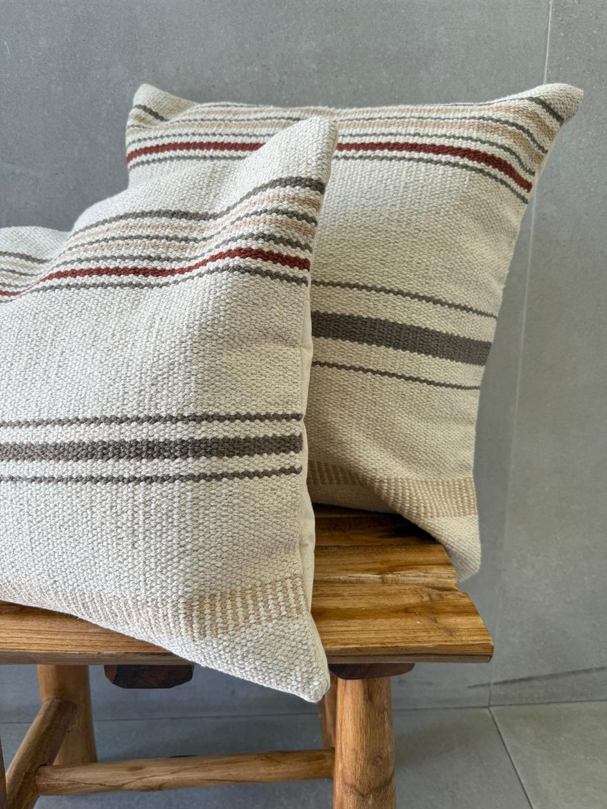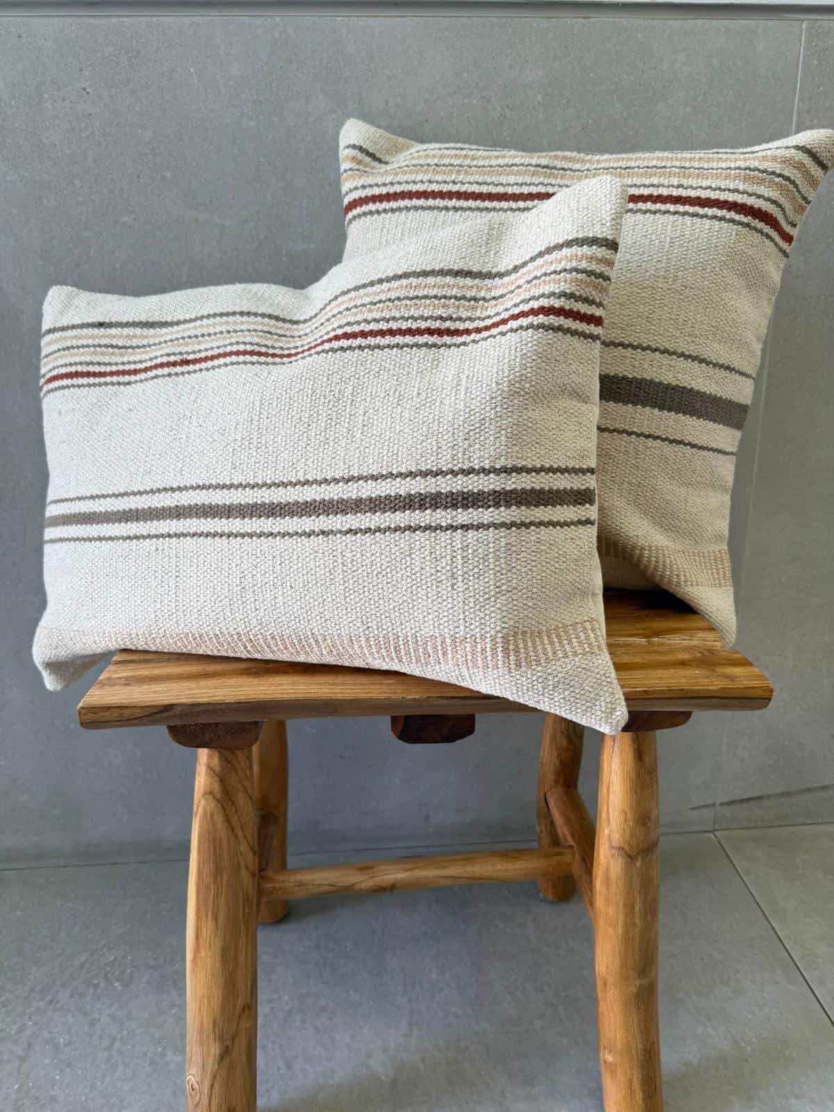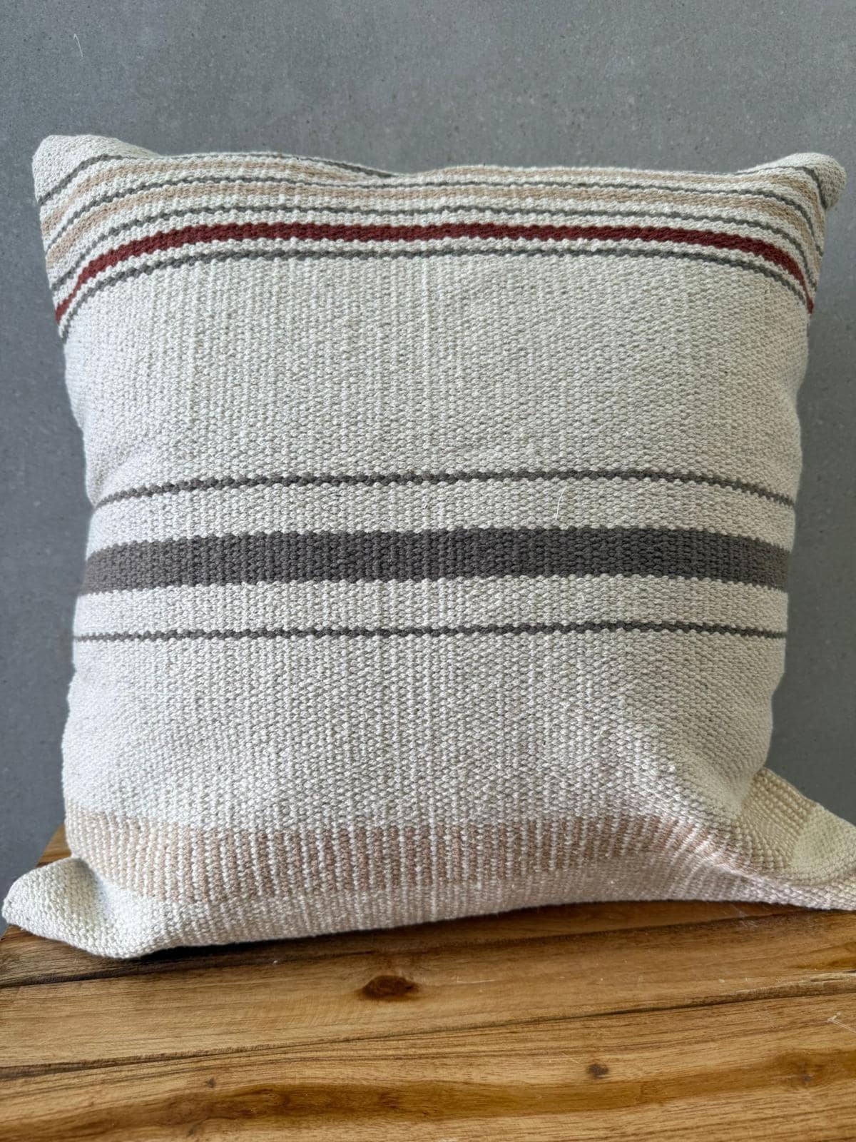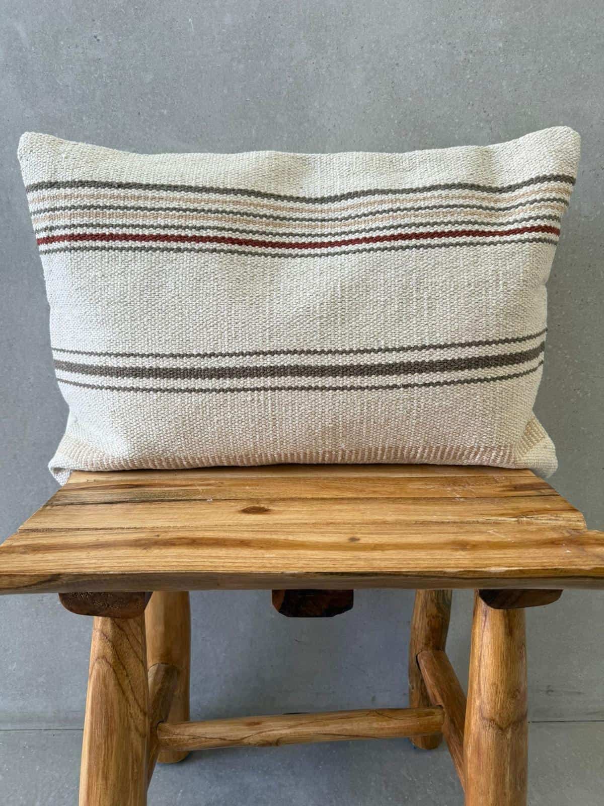 כרית נוי מהממת בגוון טבעים עם פסים בגווני אפור בז' ובורדו