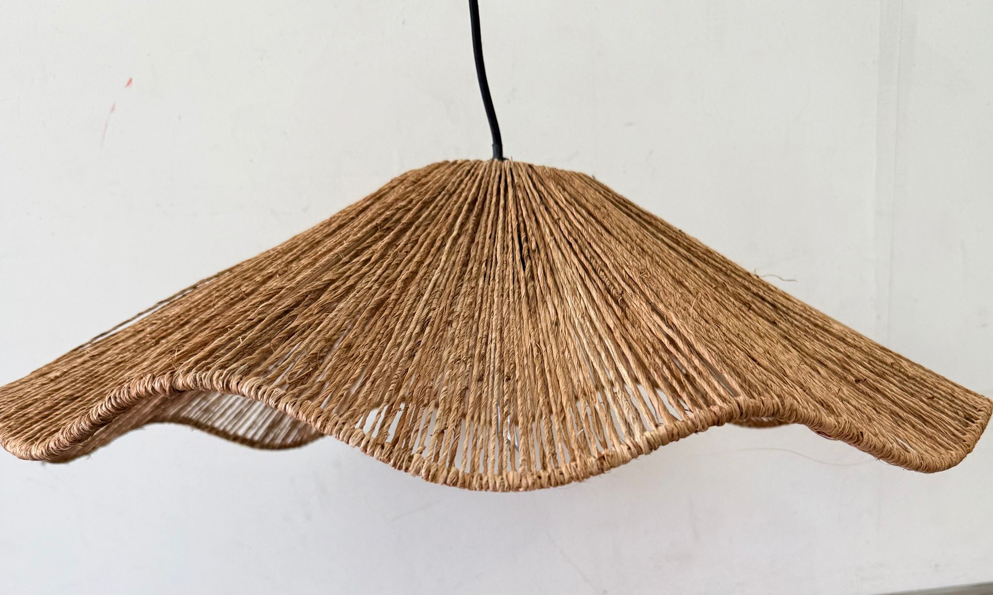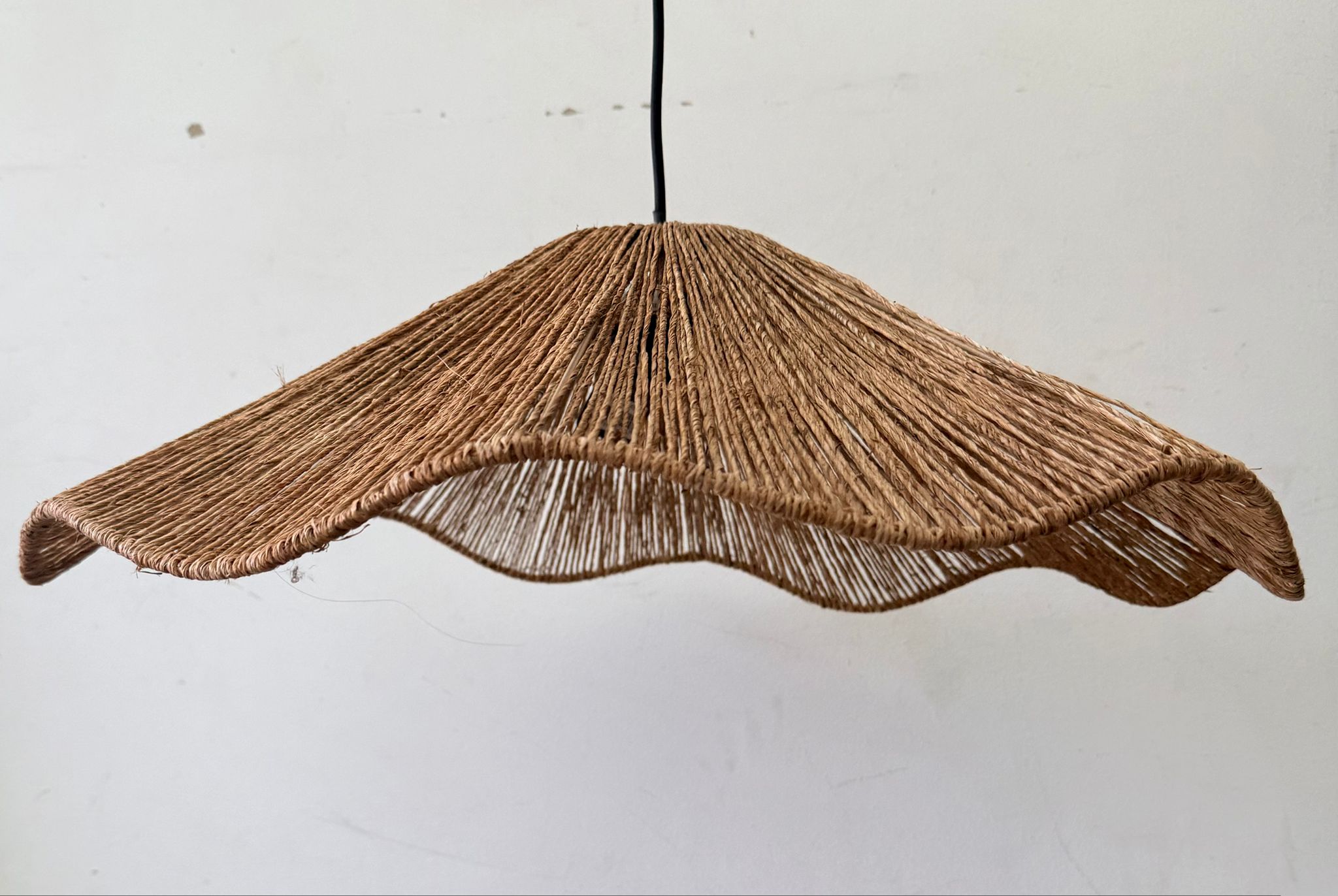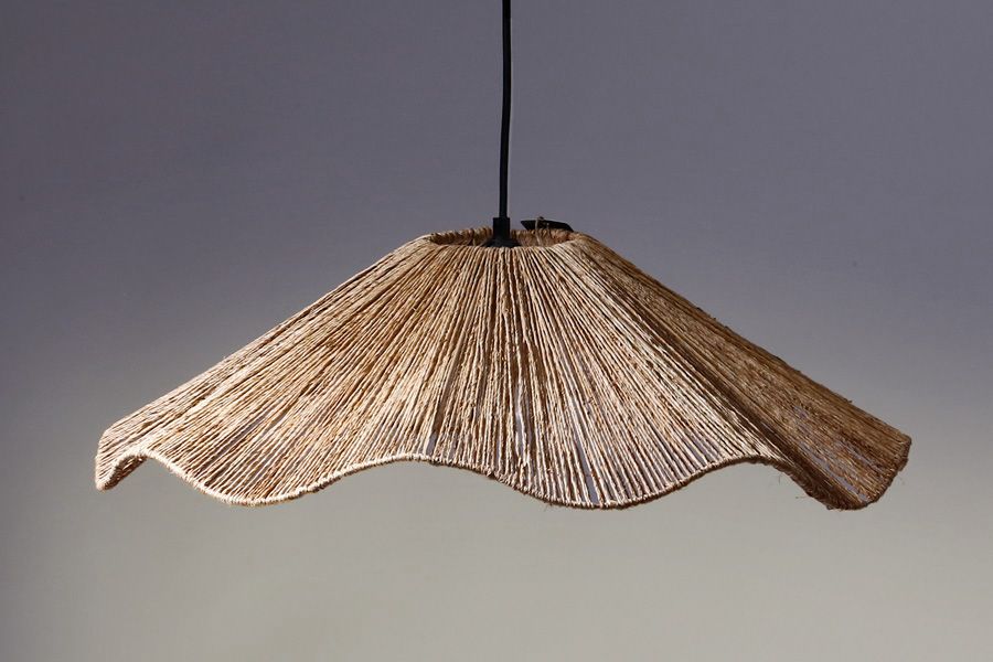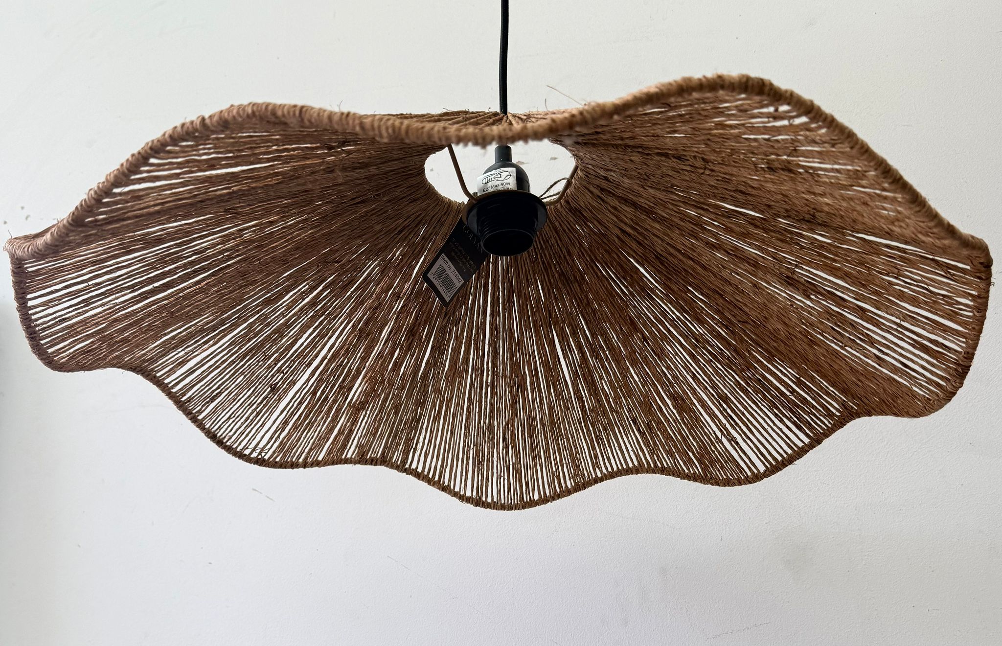 מנורת תקרה מהממת ומיוחדת, אהיל מעוצב בצורת פרח מלופף בחוטי יוטה בגוון טבעי