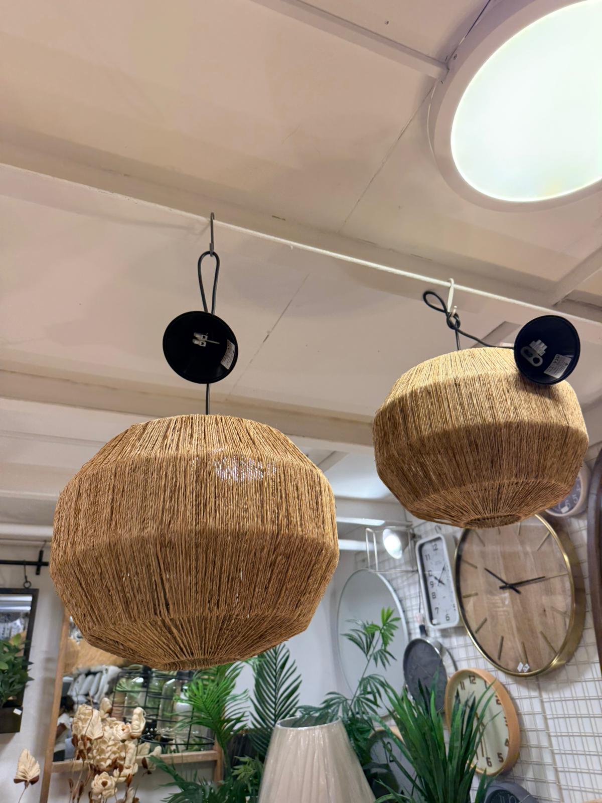 מנורה לתליה אהיל מעוגל מלופף בחבל טבעי חוט יוטה