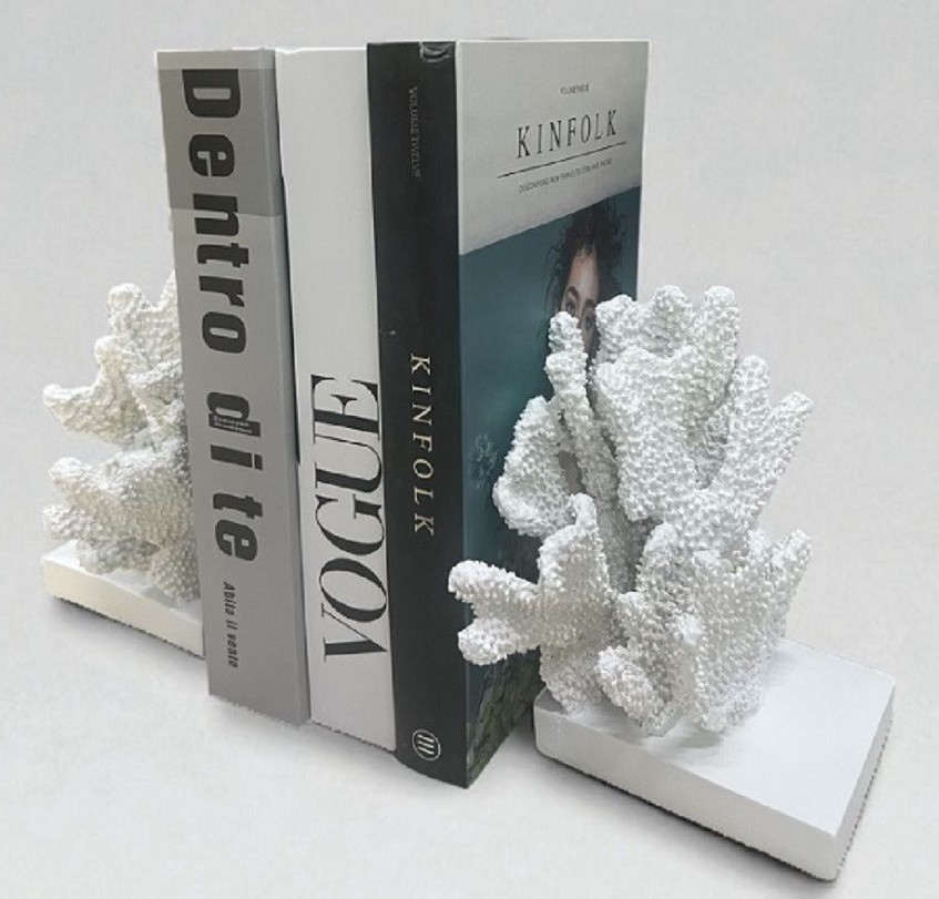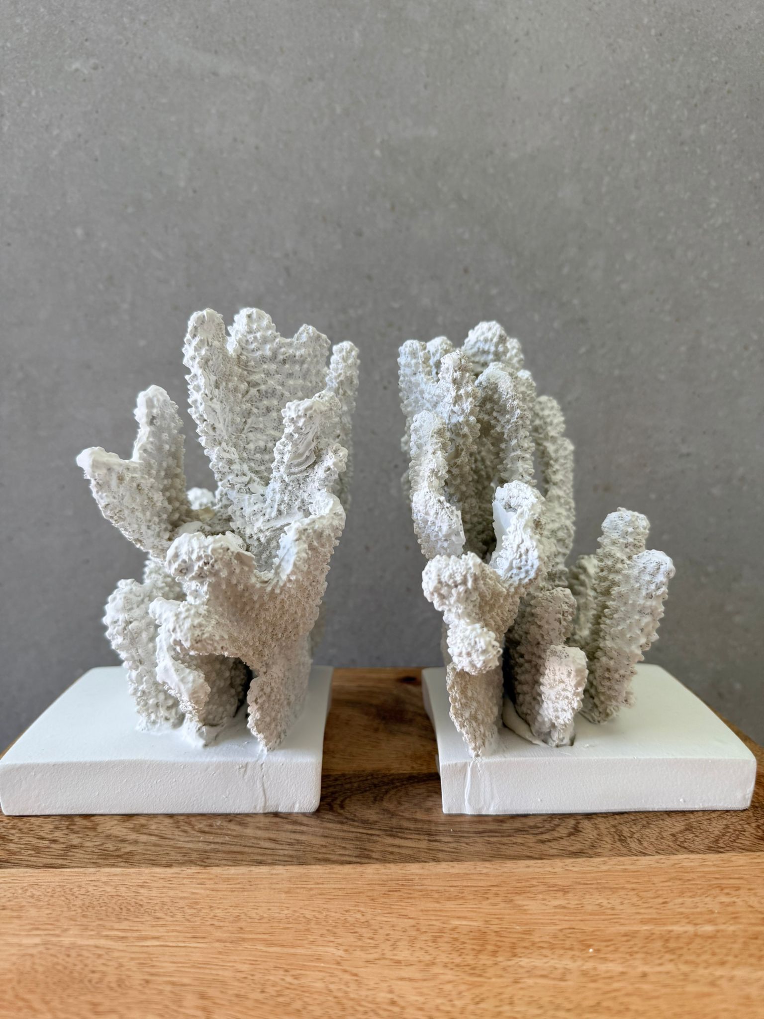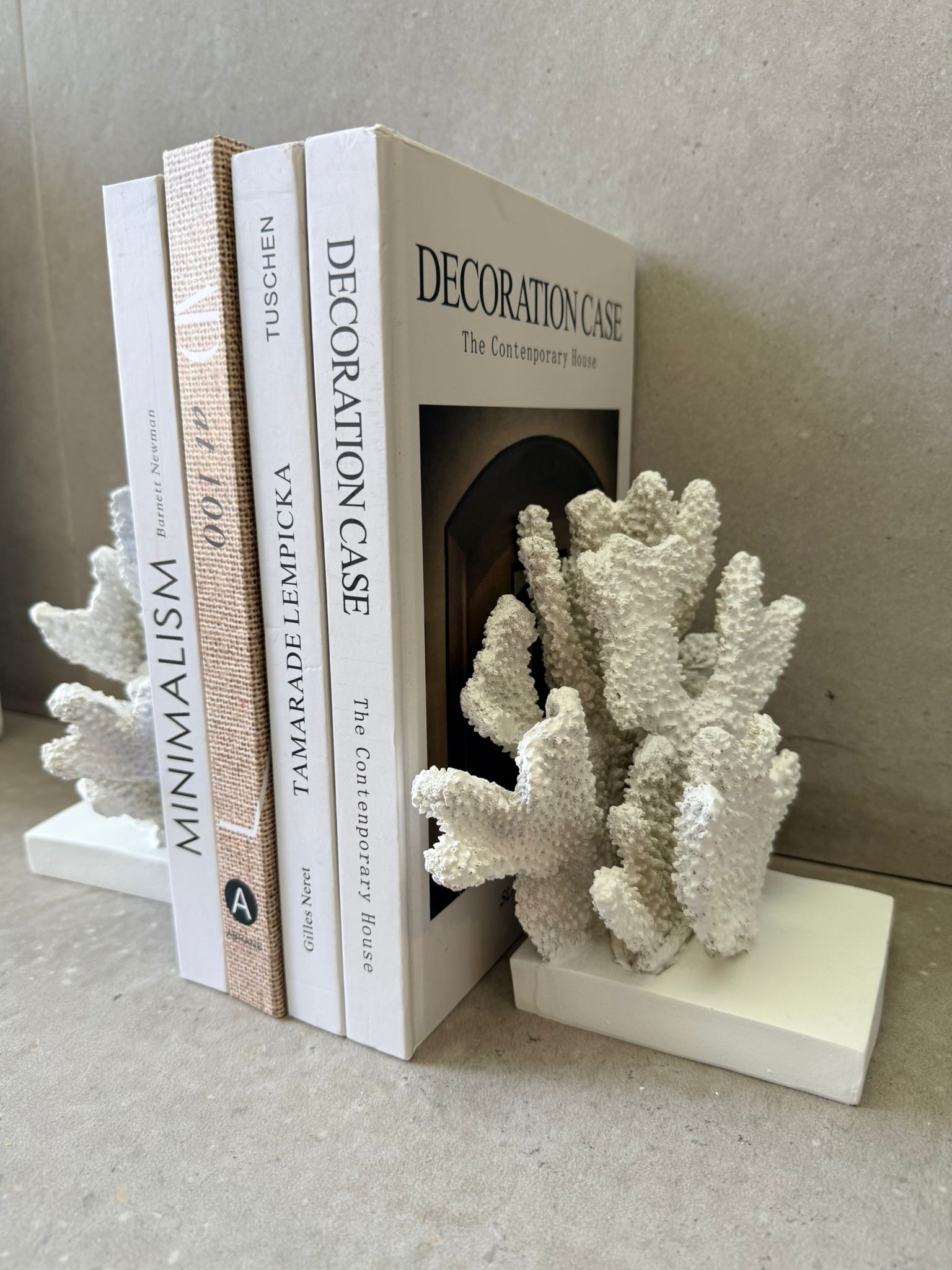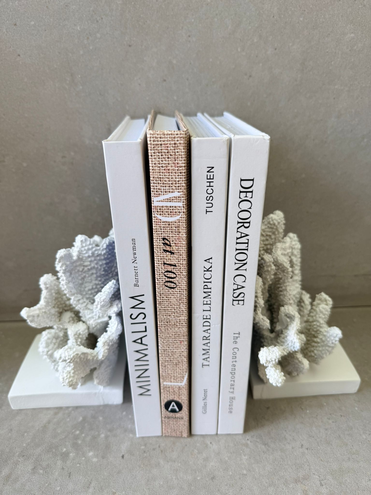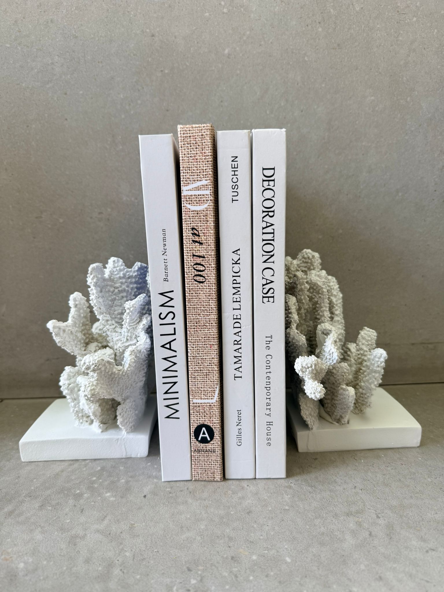 סט של שני תומכי ספרים אלמוגים, בצבע לבן, מחזיק ספרים פיס שיקי ועיצובי