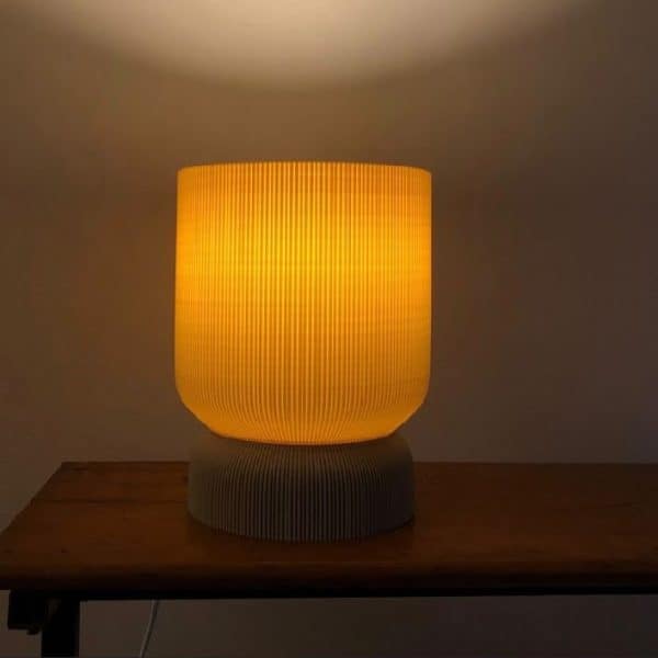 מנורה ייחודית העשויה מחומרים ממוחזרים ומיוצרת במדפסת תלת מימד.
