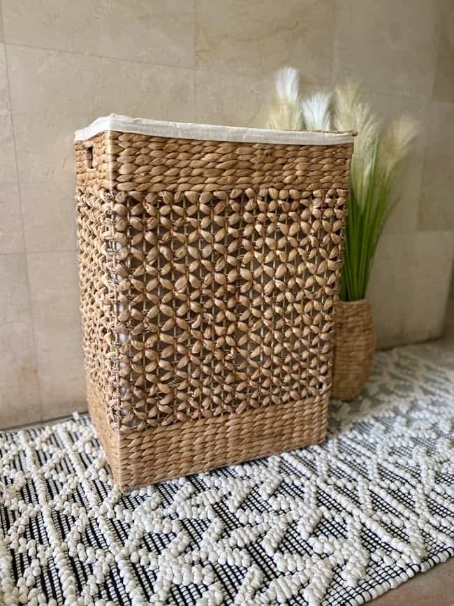 סל כביסה מלבני מקש עם בטנה מבד כותנה.