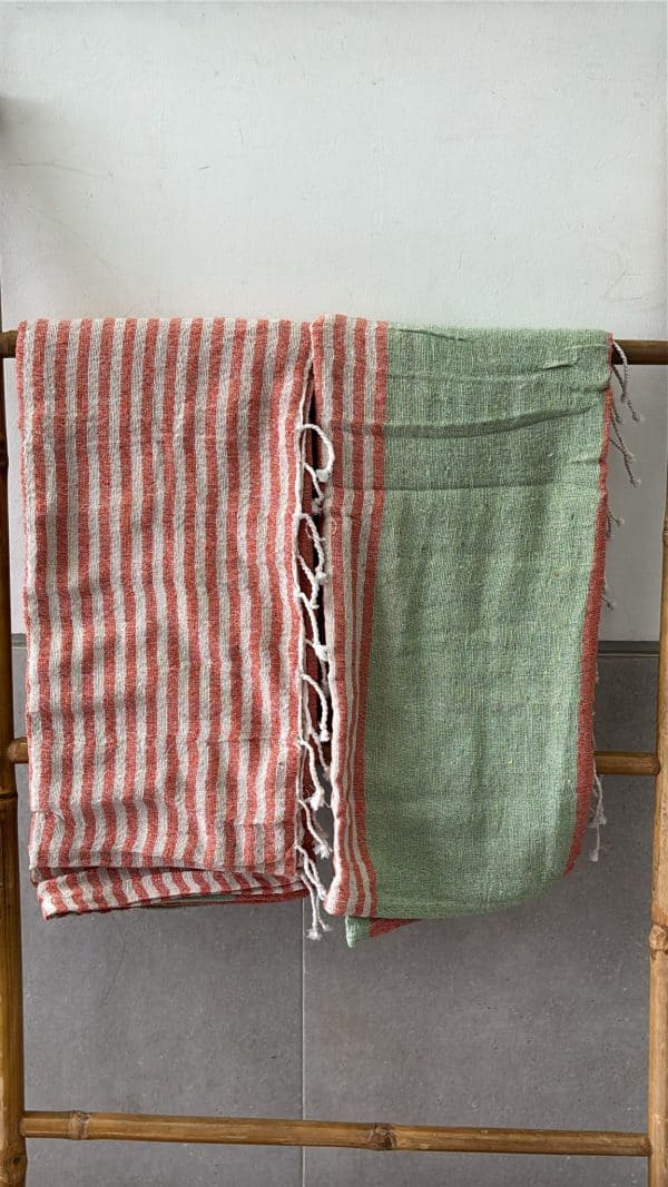 מגבות חוף מעוצבות עם פסים בגווני אדום/ירוק