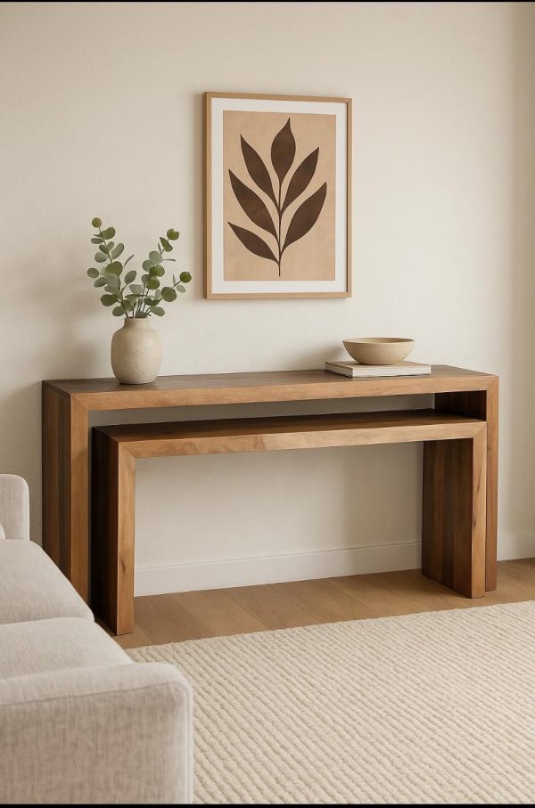 קונסולת עץ מרשימה מעץ מנגו טבעי – 2 גדלים לבחירה