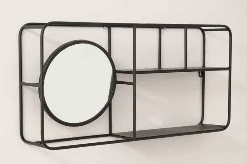 מדפים עם מראה עגולה, מתאים לתליה בחדר רחצה