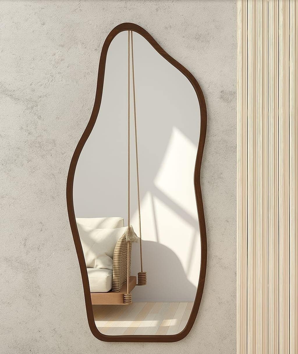 מראת גוף מושלמת בצורה אמורפית עם מסגרת עץ מלא לתליה על הקיר