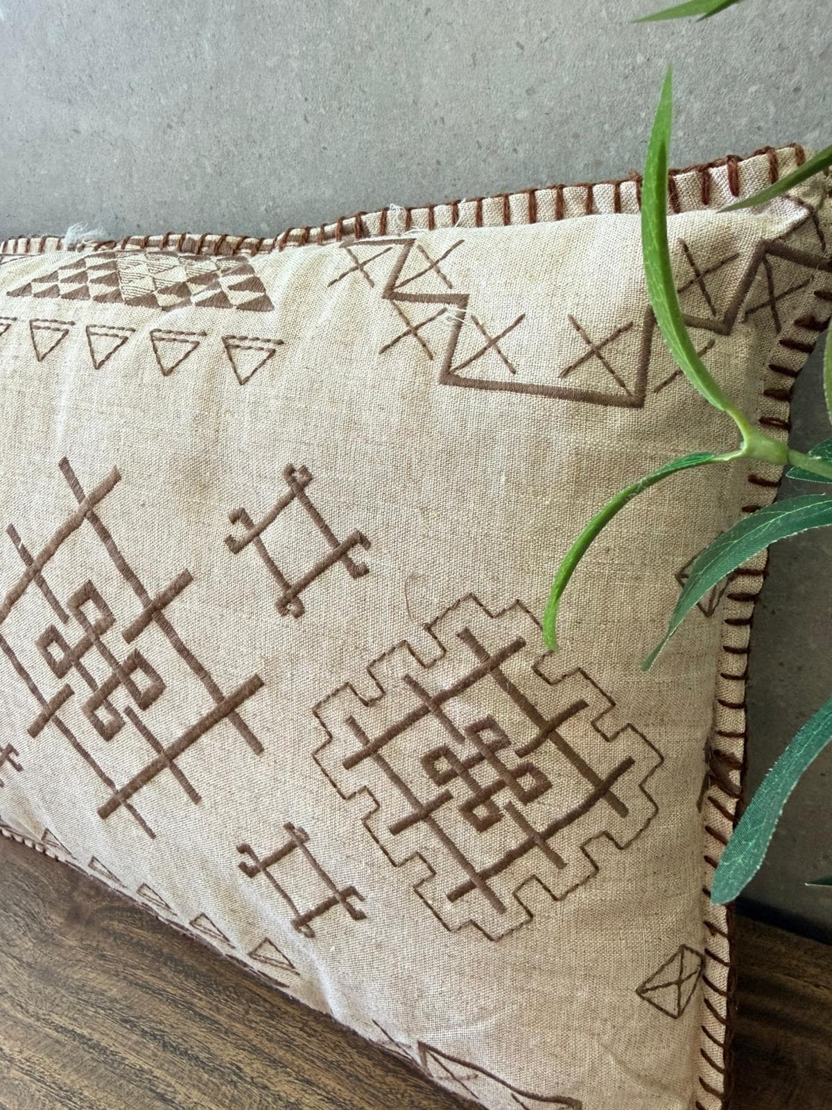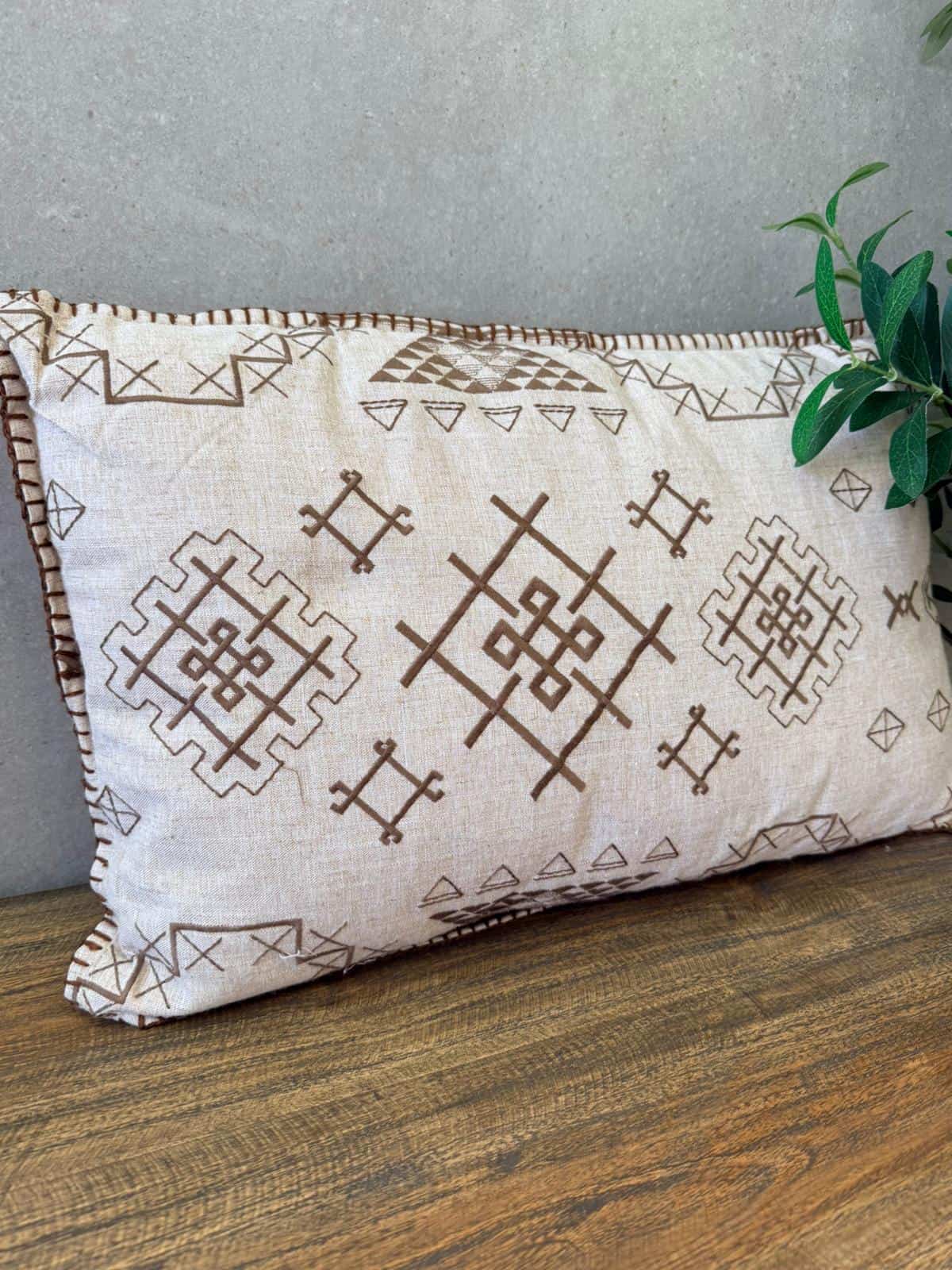 כרית כותנה בגוון טבעי שמנת ורקמה בחום