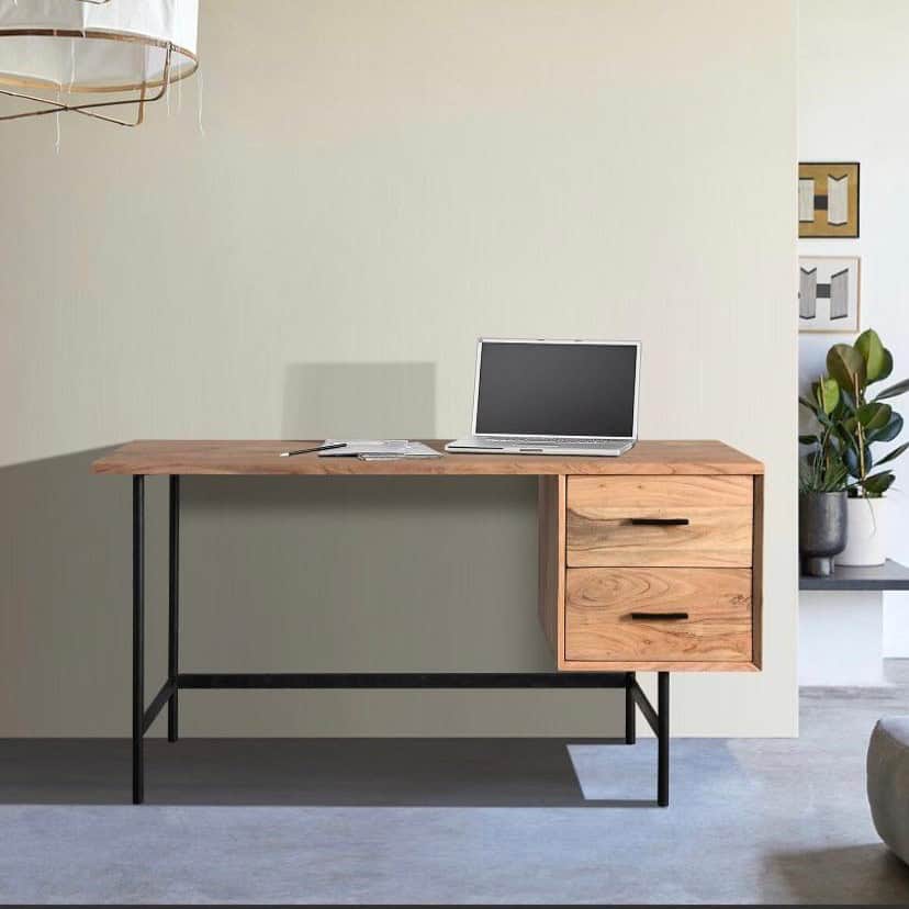 שולחן כתיבה בשילוב עת ומתכת שחורה
