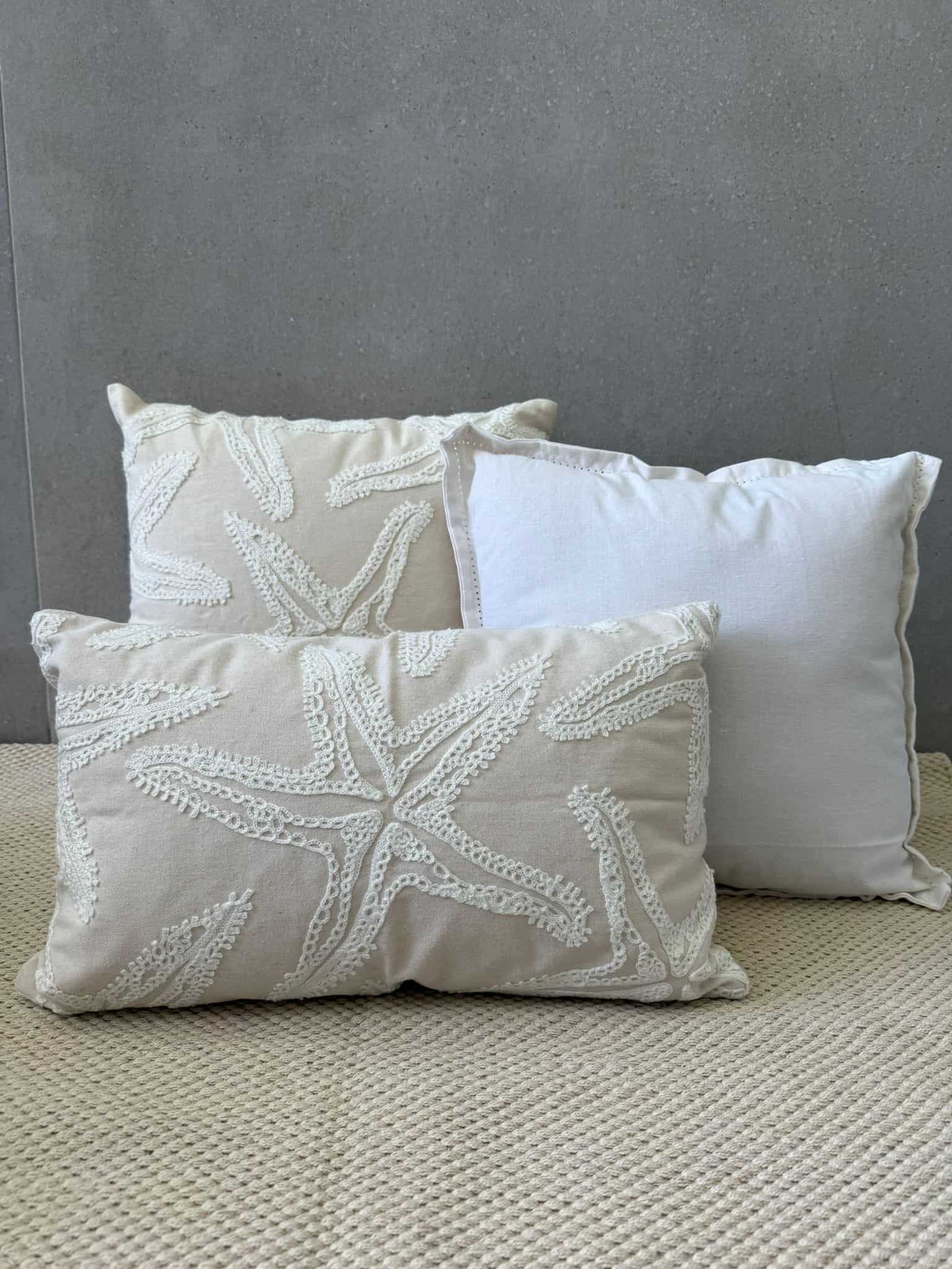 כרית מלבנית 30X50 עם דוגמת כוכבי ים בלבן