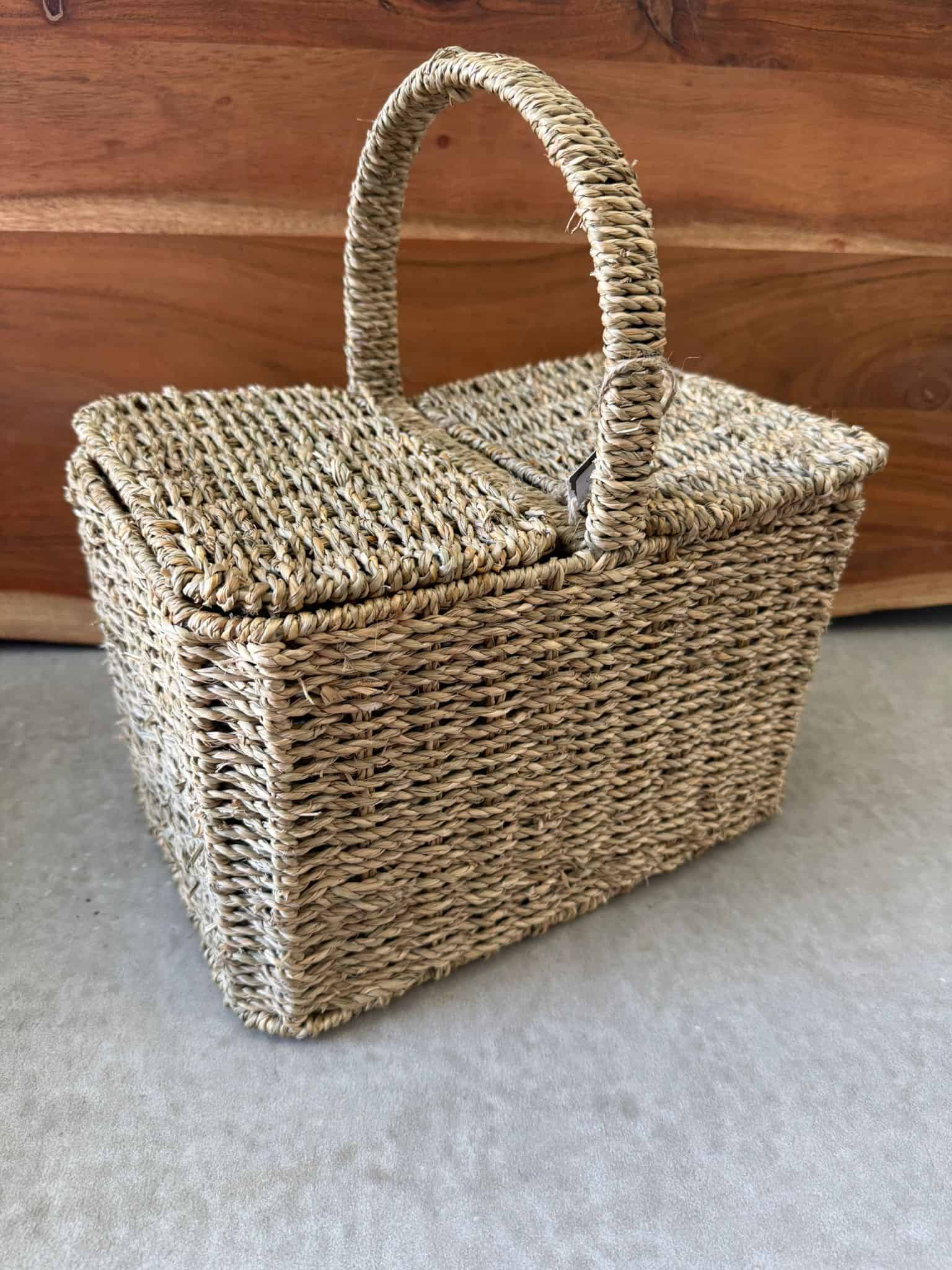 סלסלת פיקניק קלועה מהממת, סלסלה סגורה לפיקניק, לעיצוב הבית, לאחסון חפצים ועוד