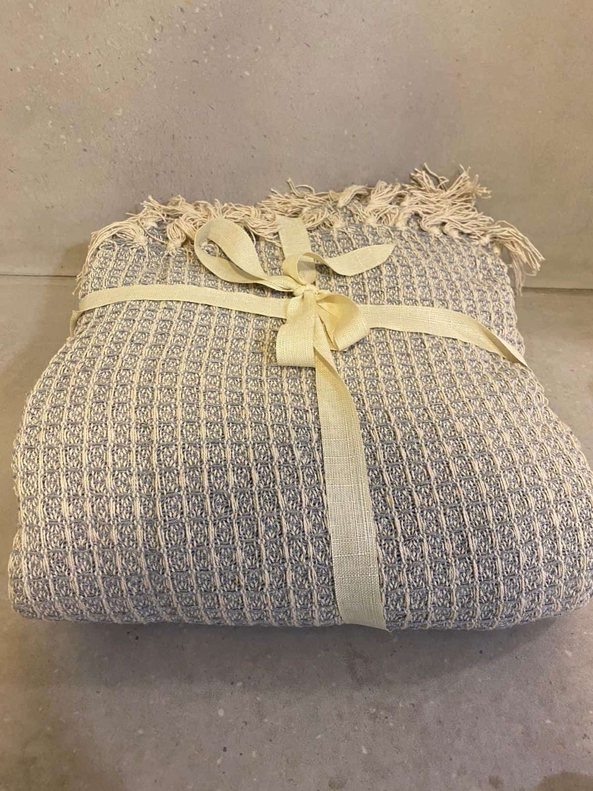 שמיכת פיקה וופל זוגי צבע אפור-תכלת