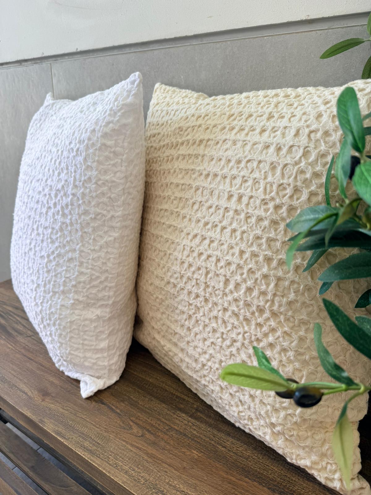 כרית נוי פיקה בצבעים לבן / שמנת לבחירה, כרית מהממת מרובעת