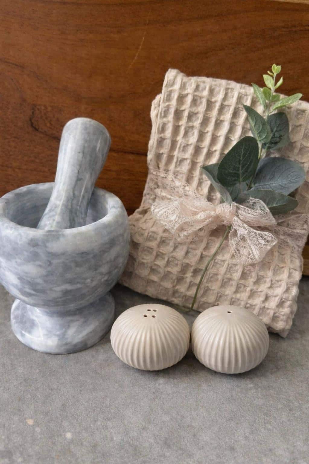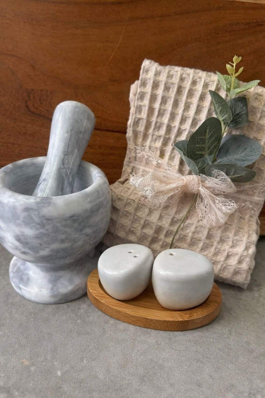 – מכתש ועלי משיש בגוון אפור