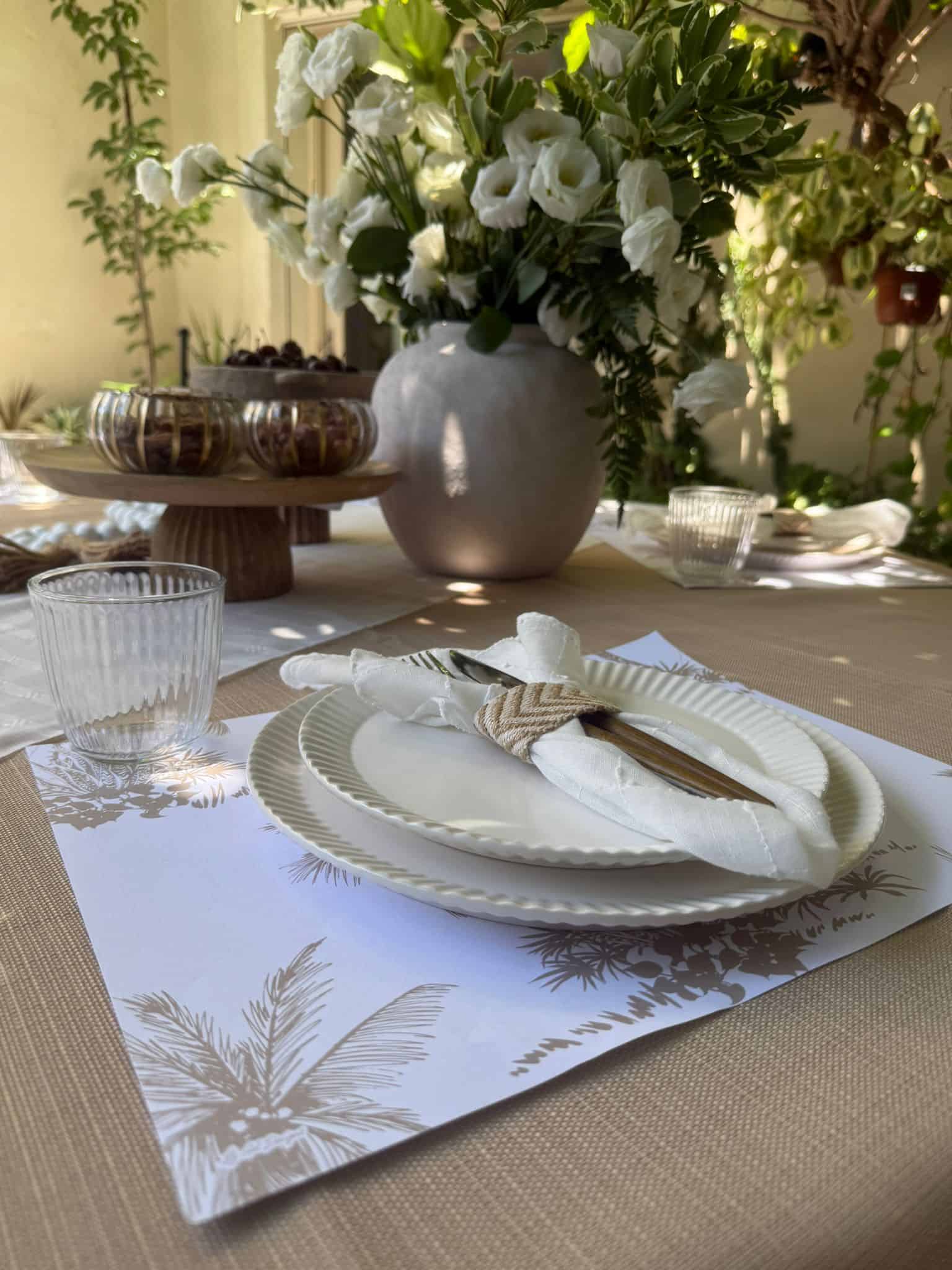 סט סידור שולחן לבן אפור – מפה, מפיות, חבקים
