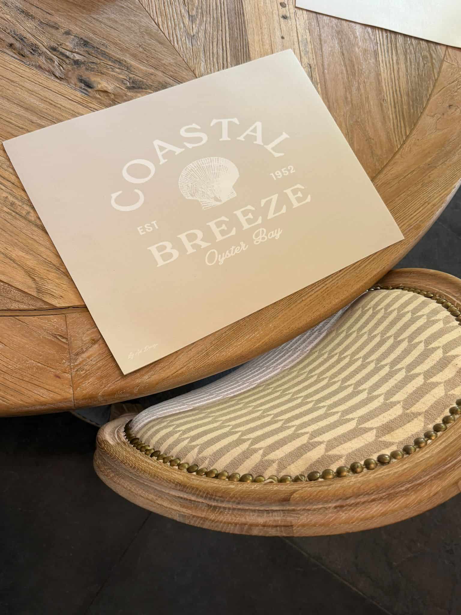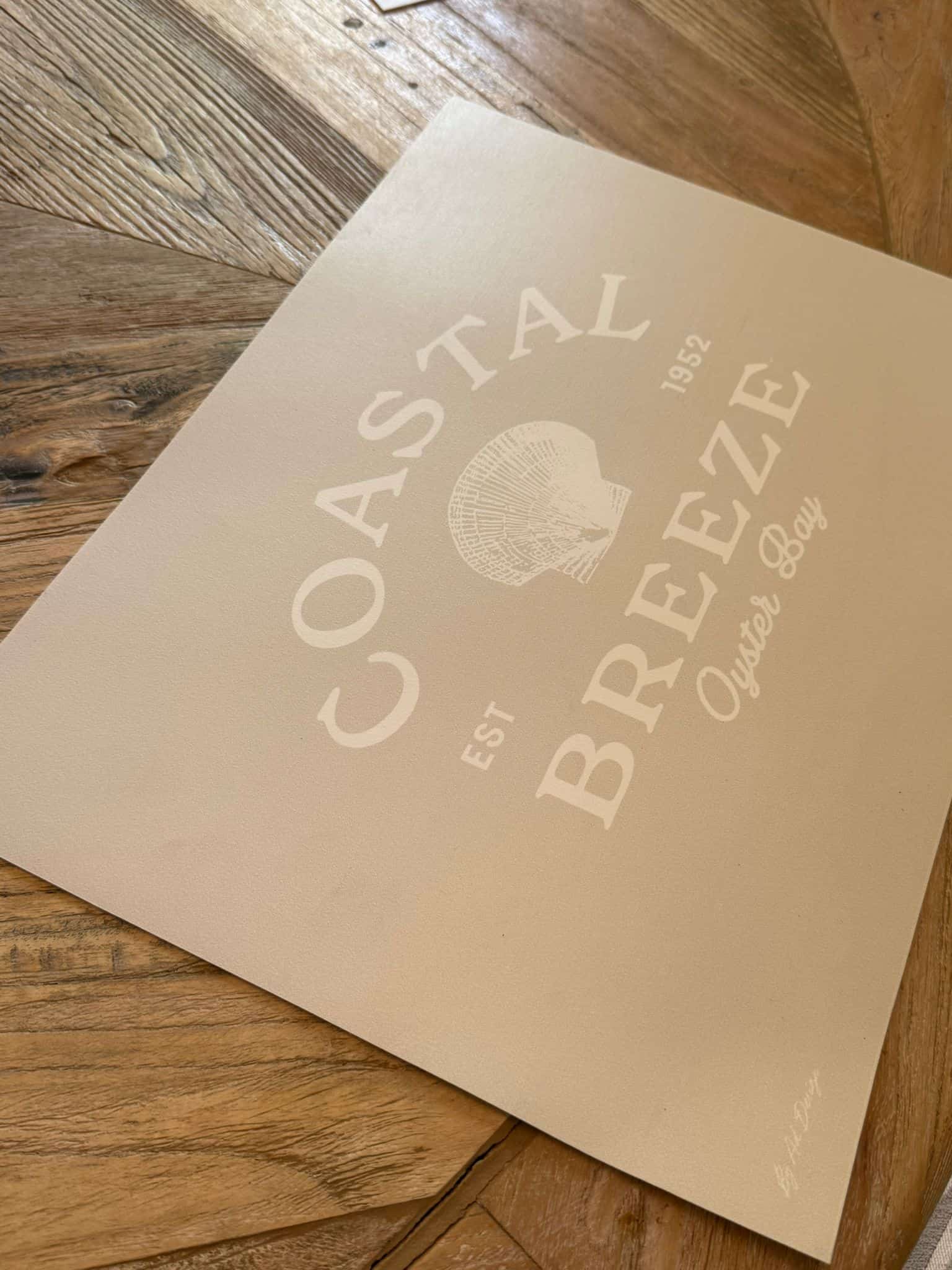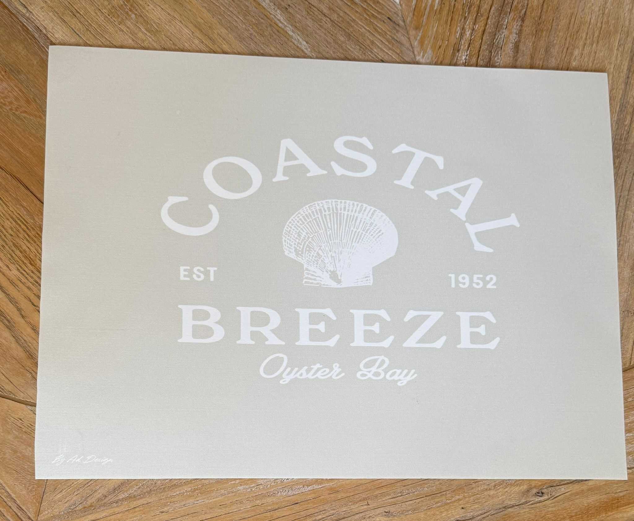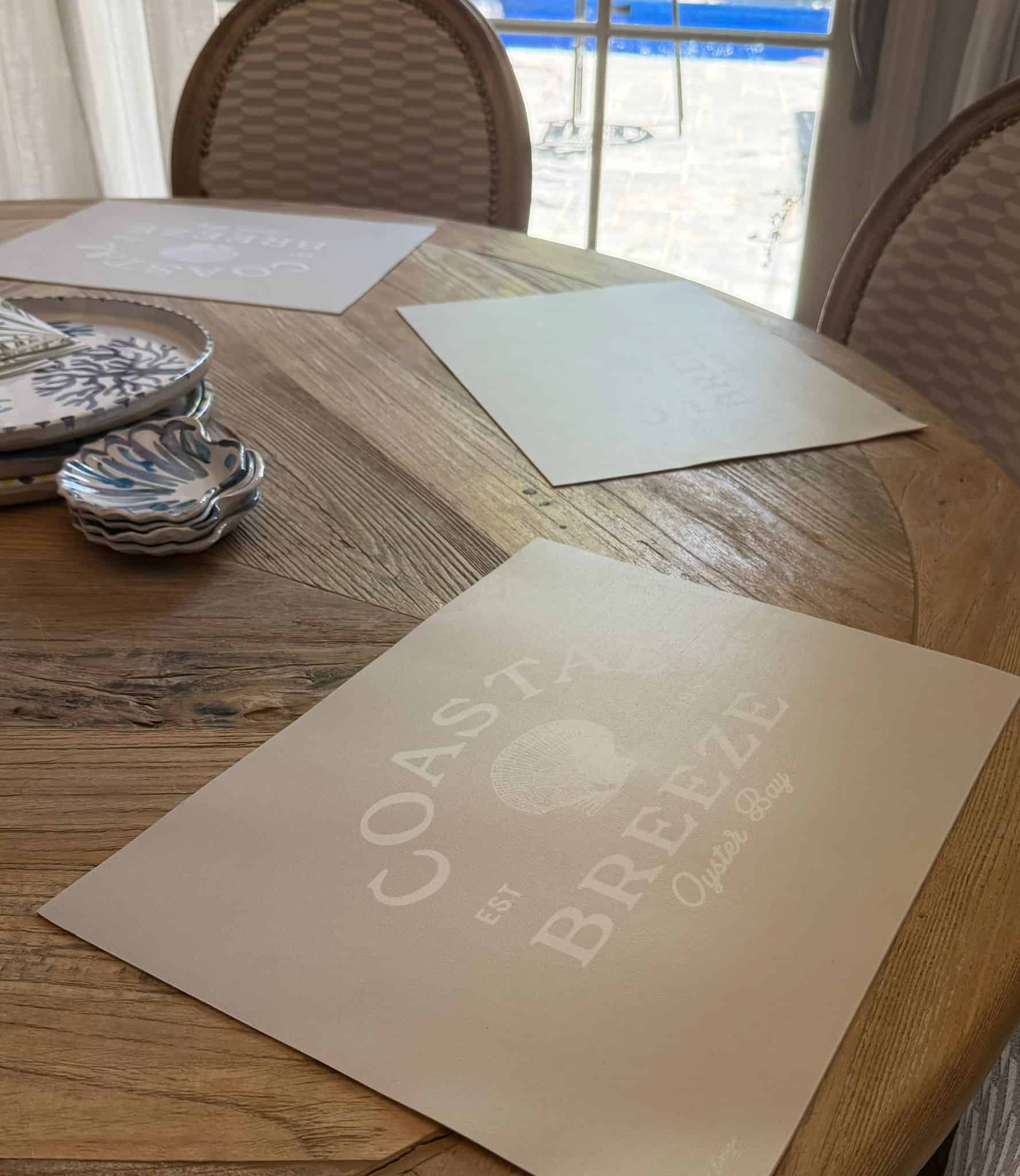 סט 4 יח' פלייסמנט מלבניים בצבע בז' עם כיתוב לבן וצדף