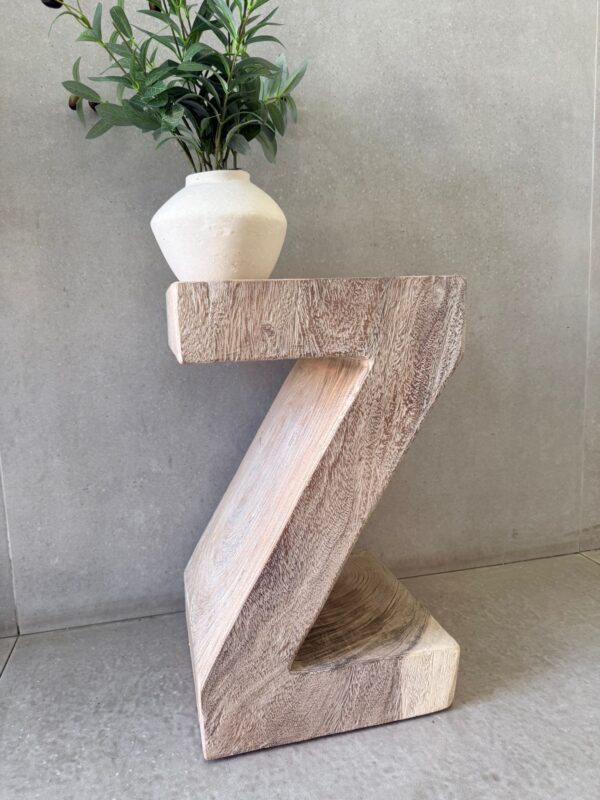 שולחן צד מהמם מעוצב בצורת Z מעץ מלא מולבן