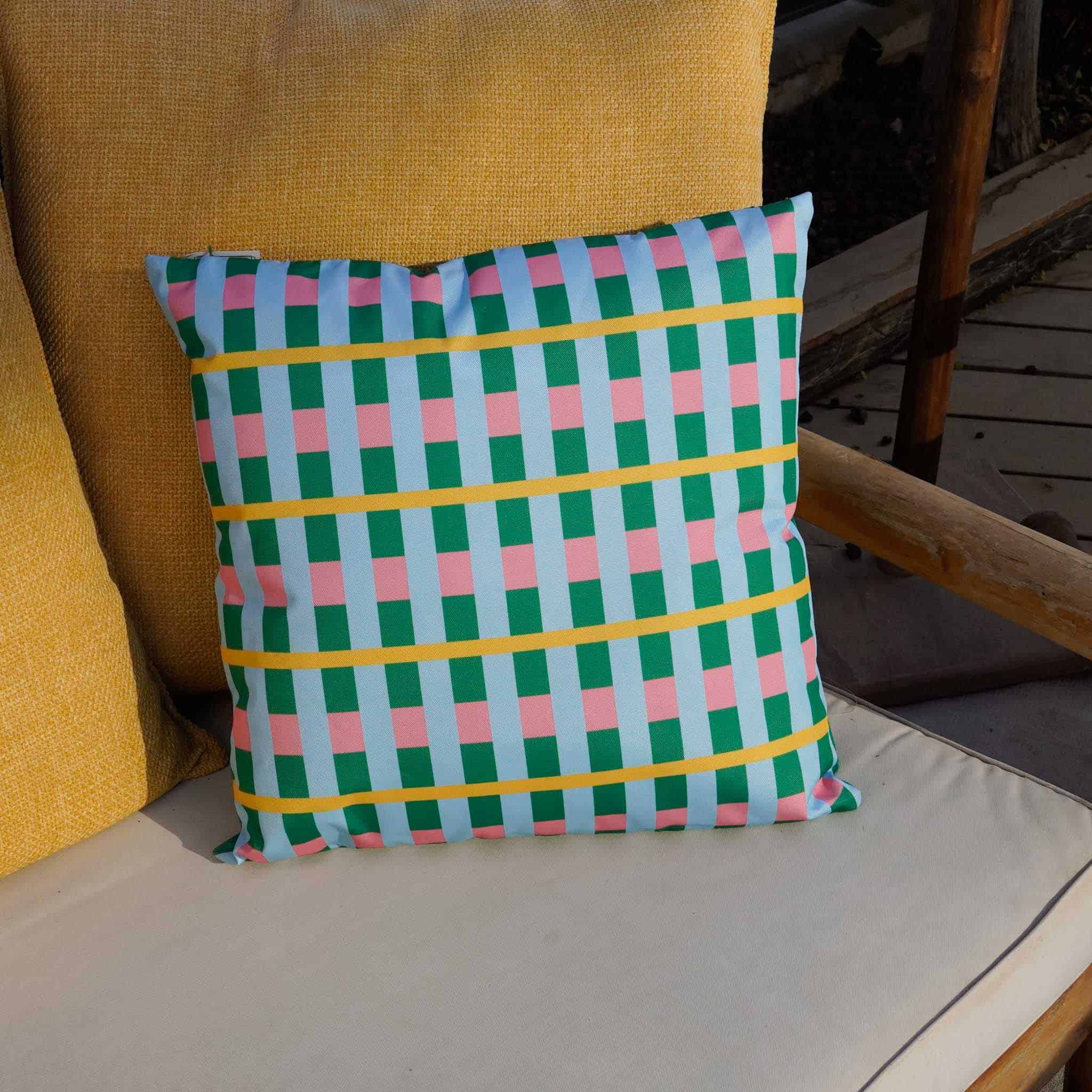 כרית צבעונית ומהממת לעיצוב, כריות עם עמידות גבוהה לתנאי חוץ, מושלמות לעיצוב פינות ישיבה בחוץ במרפסת בגינה, מתאימות גם לשימוש פנים בעיצוב הסלון.
