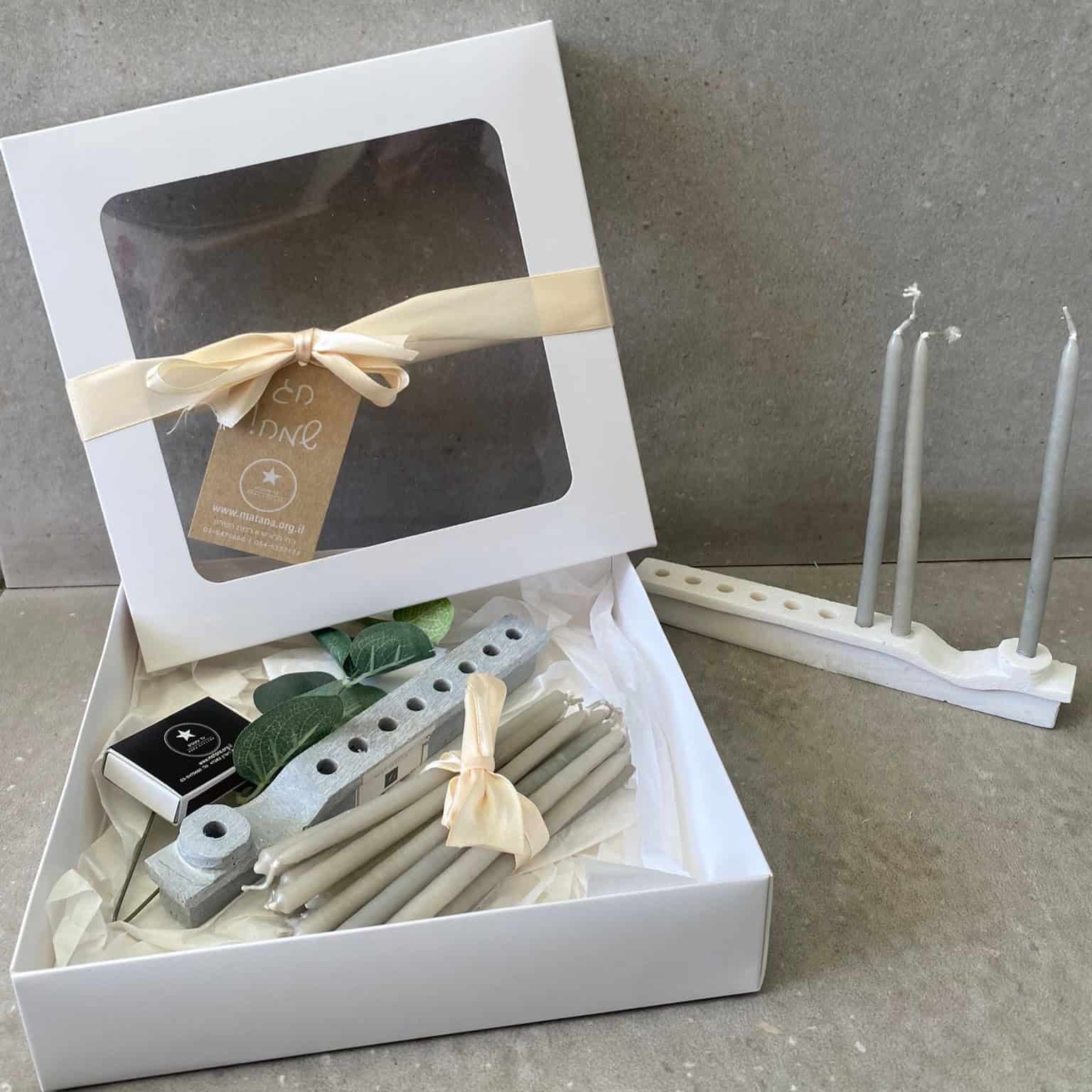 החנוכייה מגיעה במארז עם חבילת נרות לכל חג החנוכה.