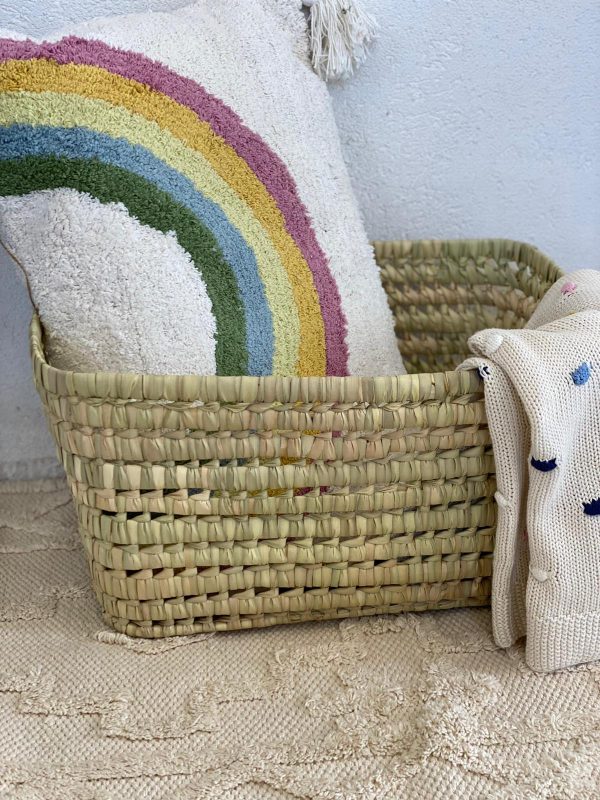 סל קש מלבני הגיע אלינו היישר ממרוקו , עשוי בעבודת יד, מוצר טבעי ואיכותי