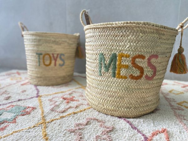 מהמם בחדרי תינוקות וילדים, סל שימושי ונוח, עם כיתוב בחוטים צבעוניים