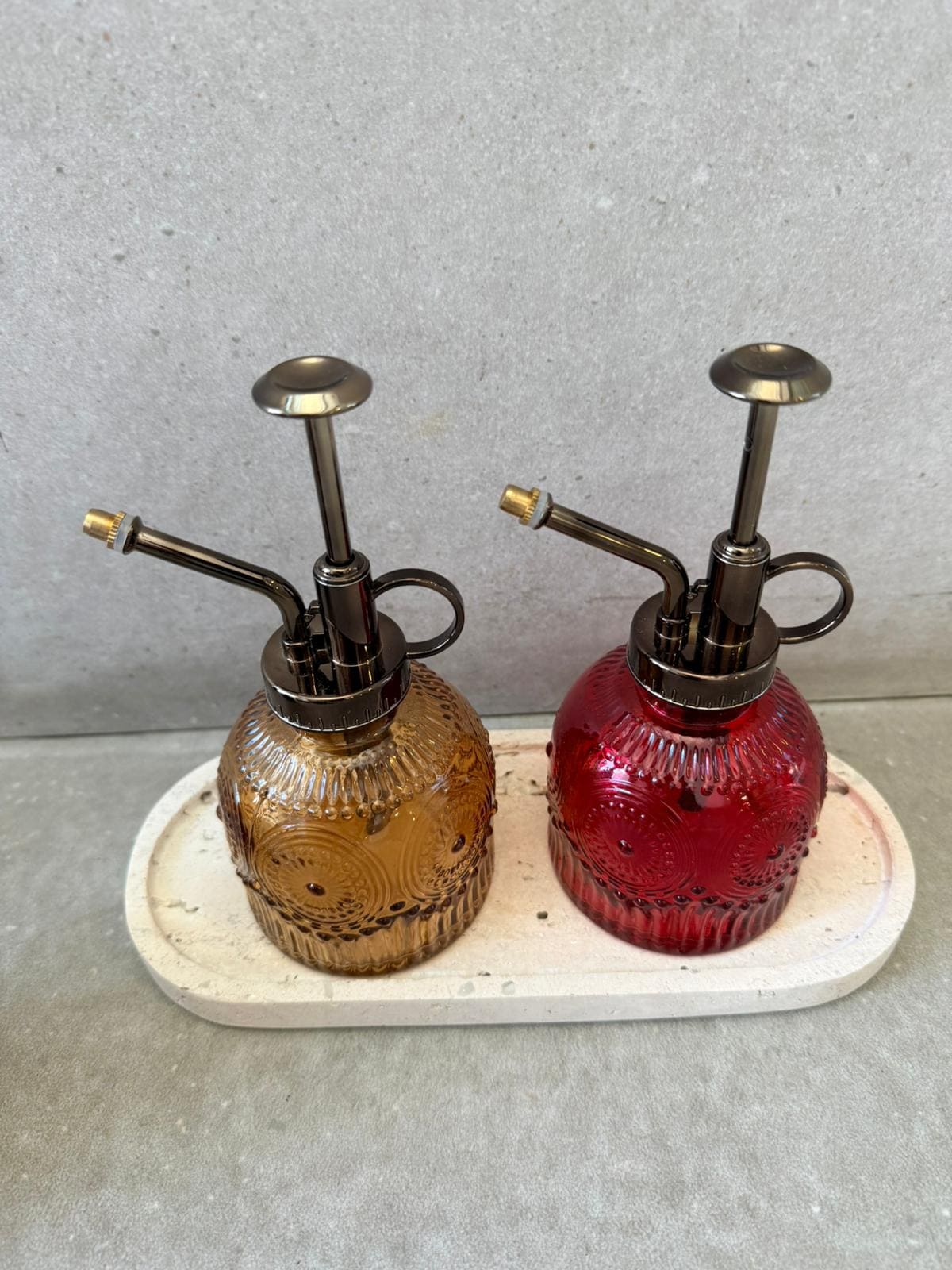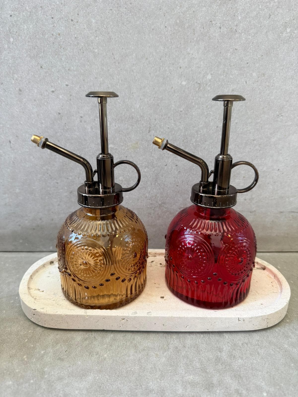 שפריצר וינטג' מהמם בבקבוק זכוכית מעוצב בשני צבעים – קאמל ואדום