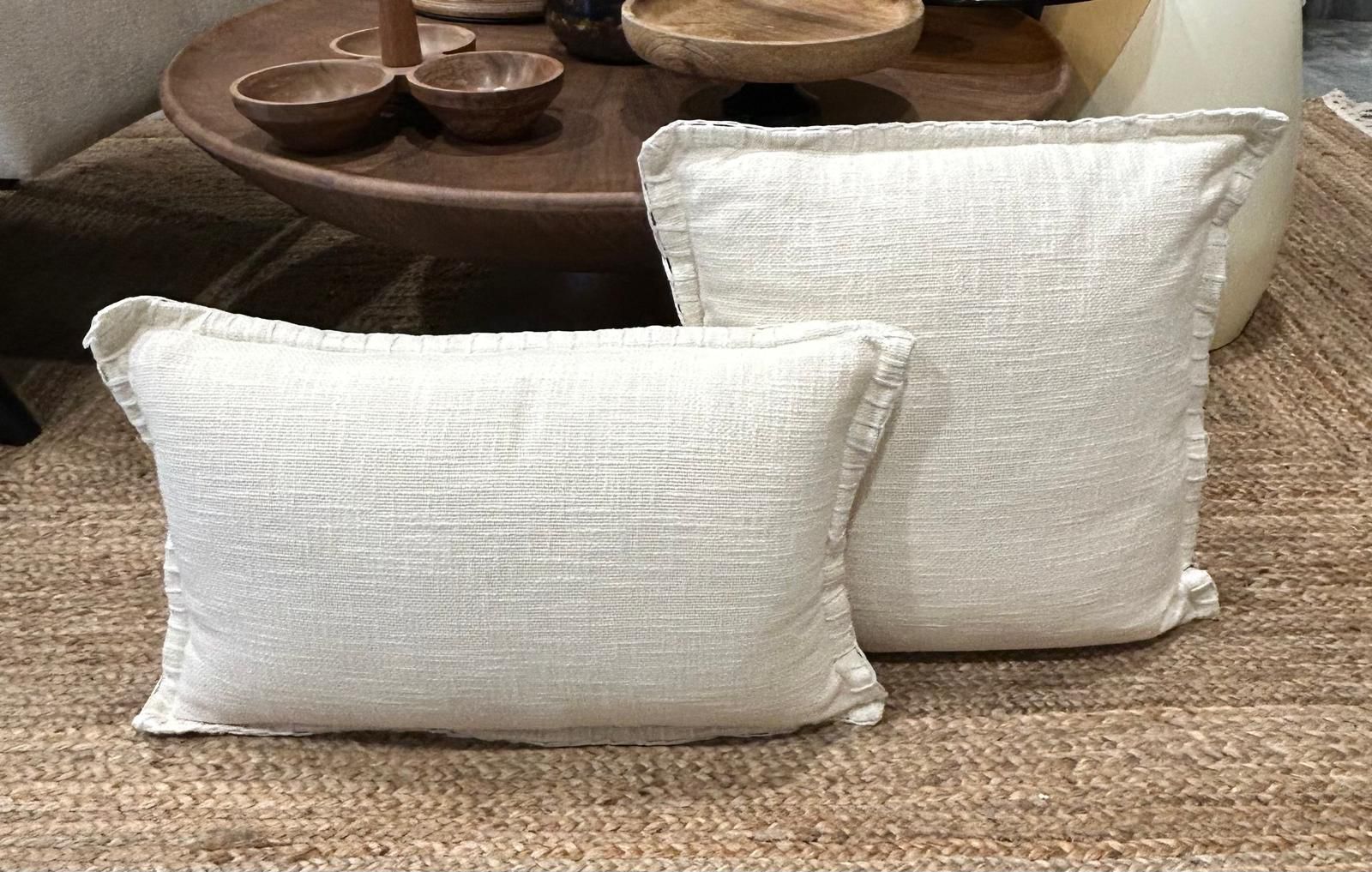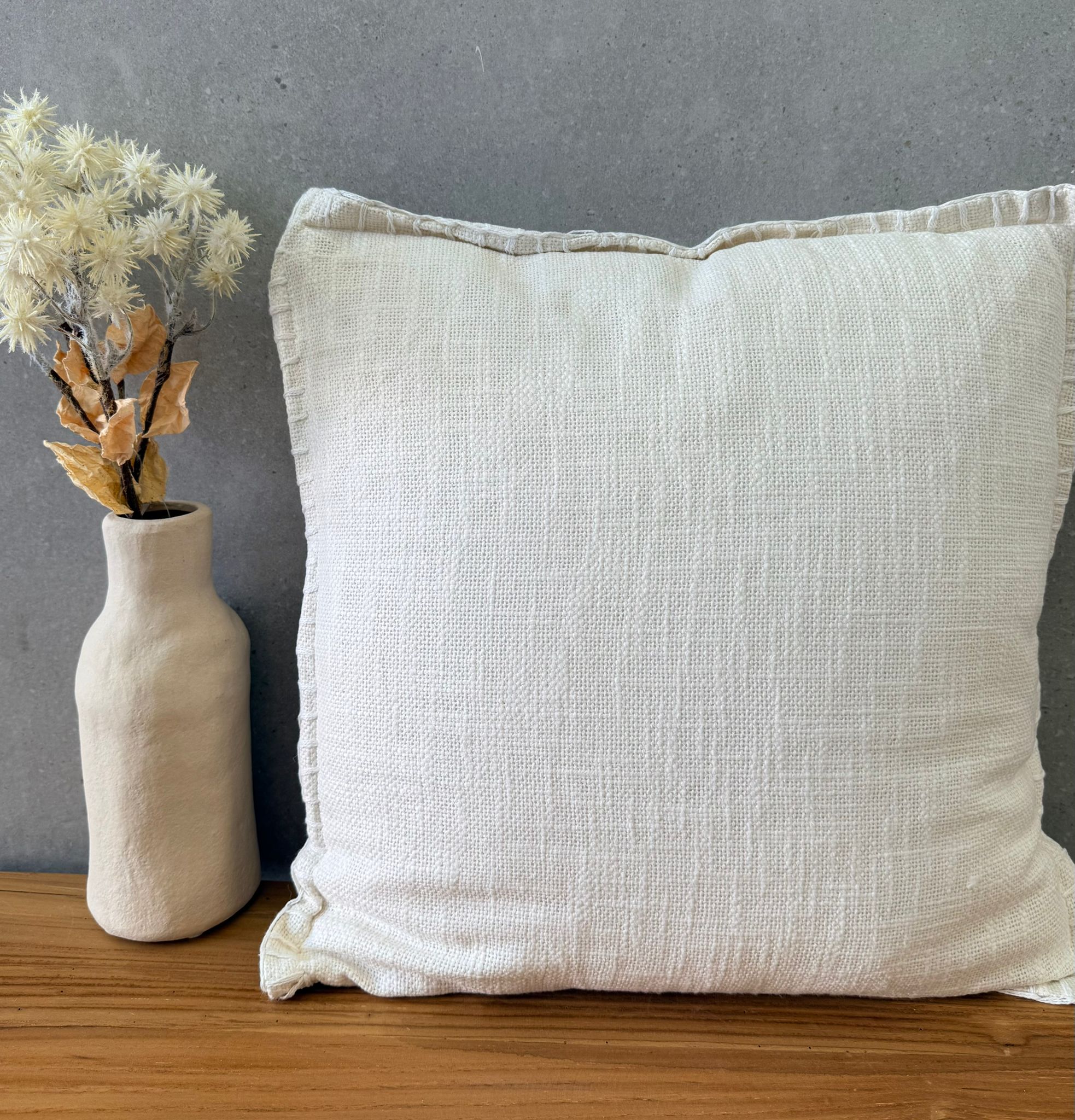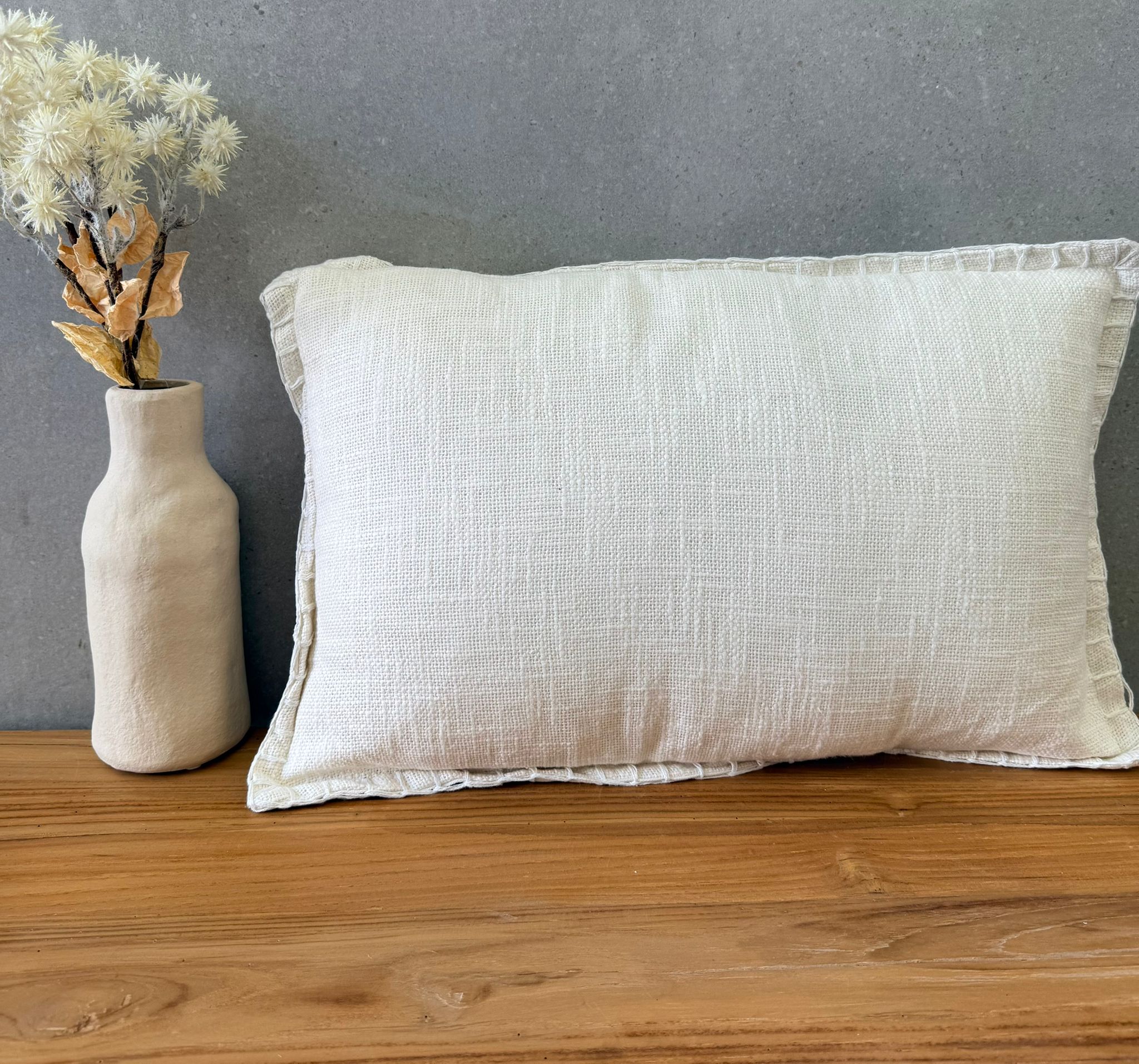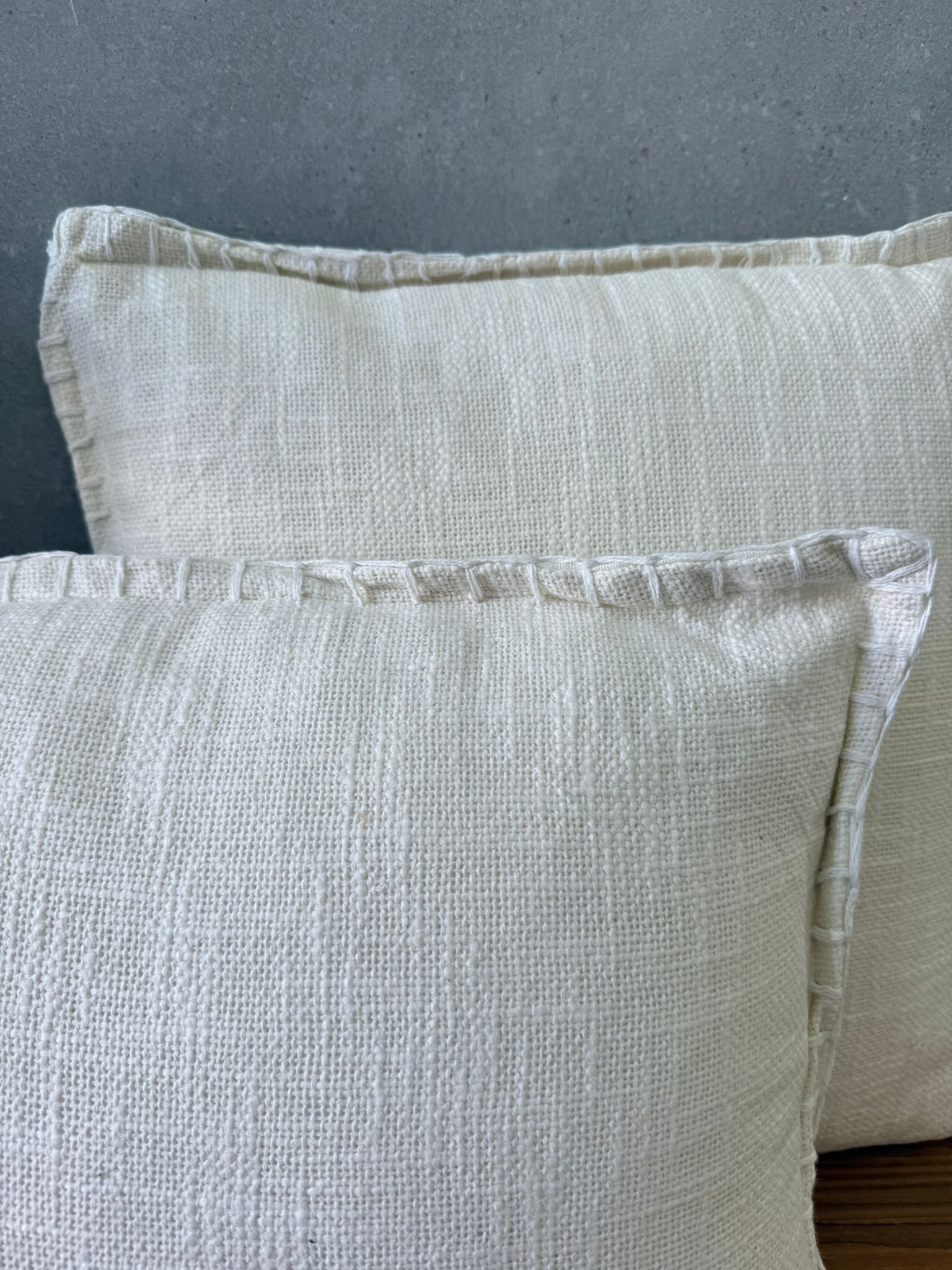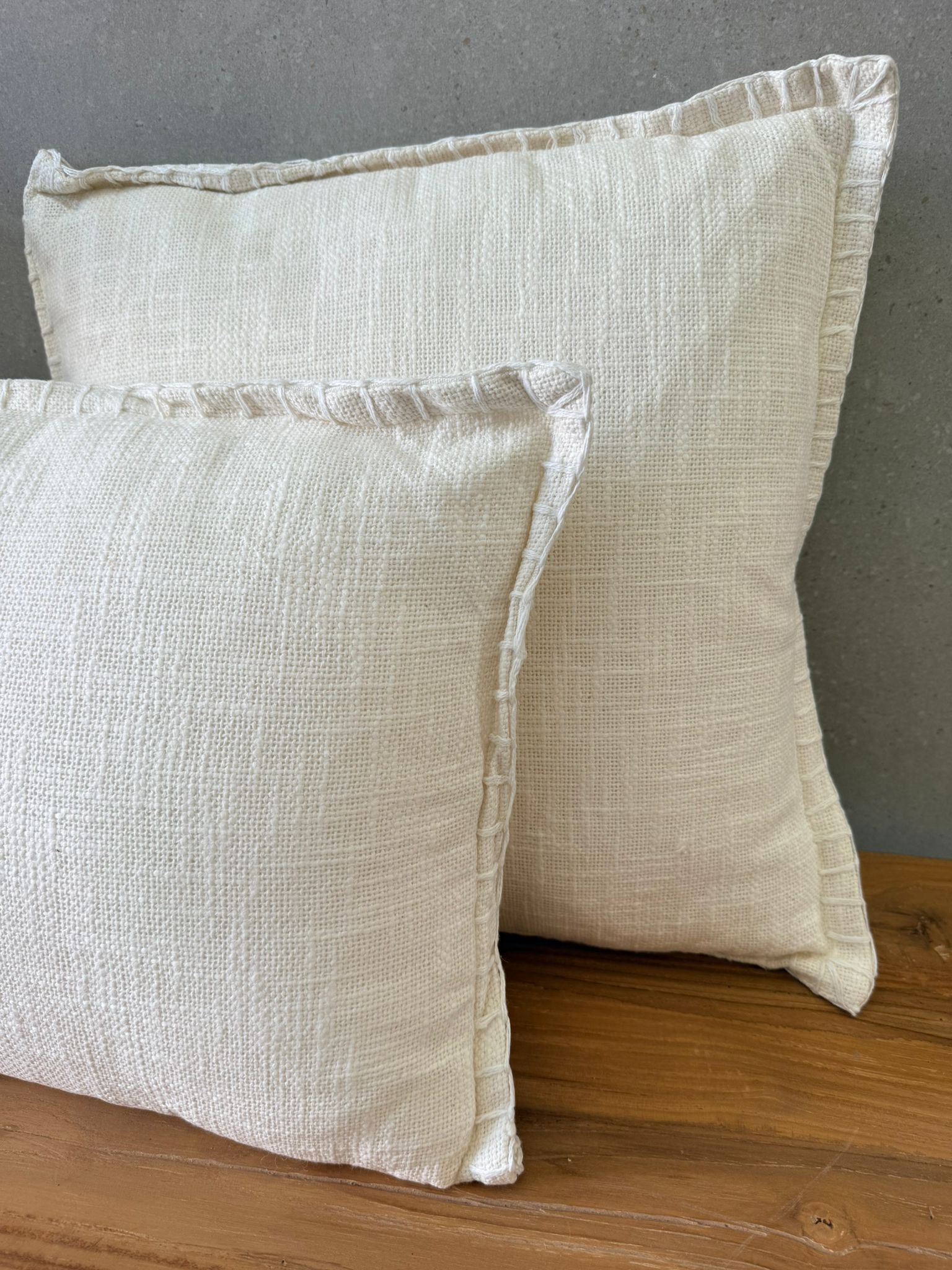 כרית נוי בצבע לבן כיסוי מכותנה עם מסגרת תפר בצבע לבן